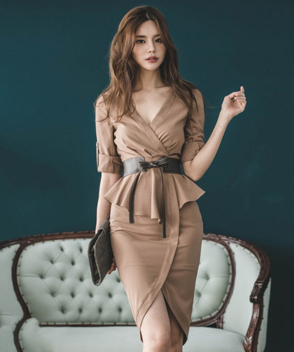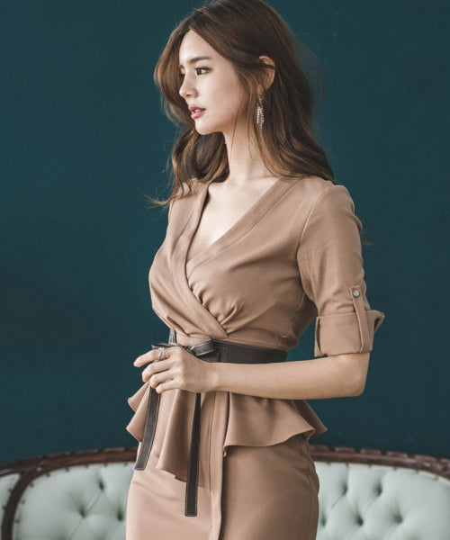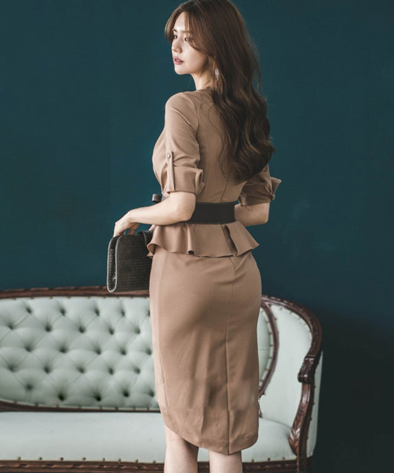 ドレス パーティードレス ひざ丈ドレス 通勤 結婚式 フリル MY2-ZED889329B