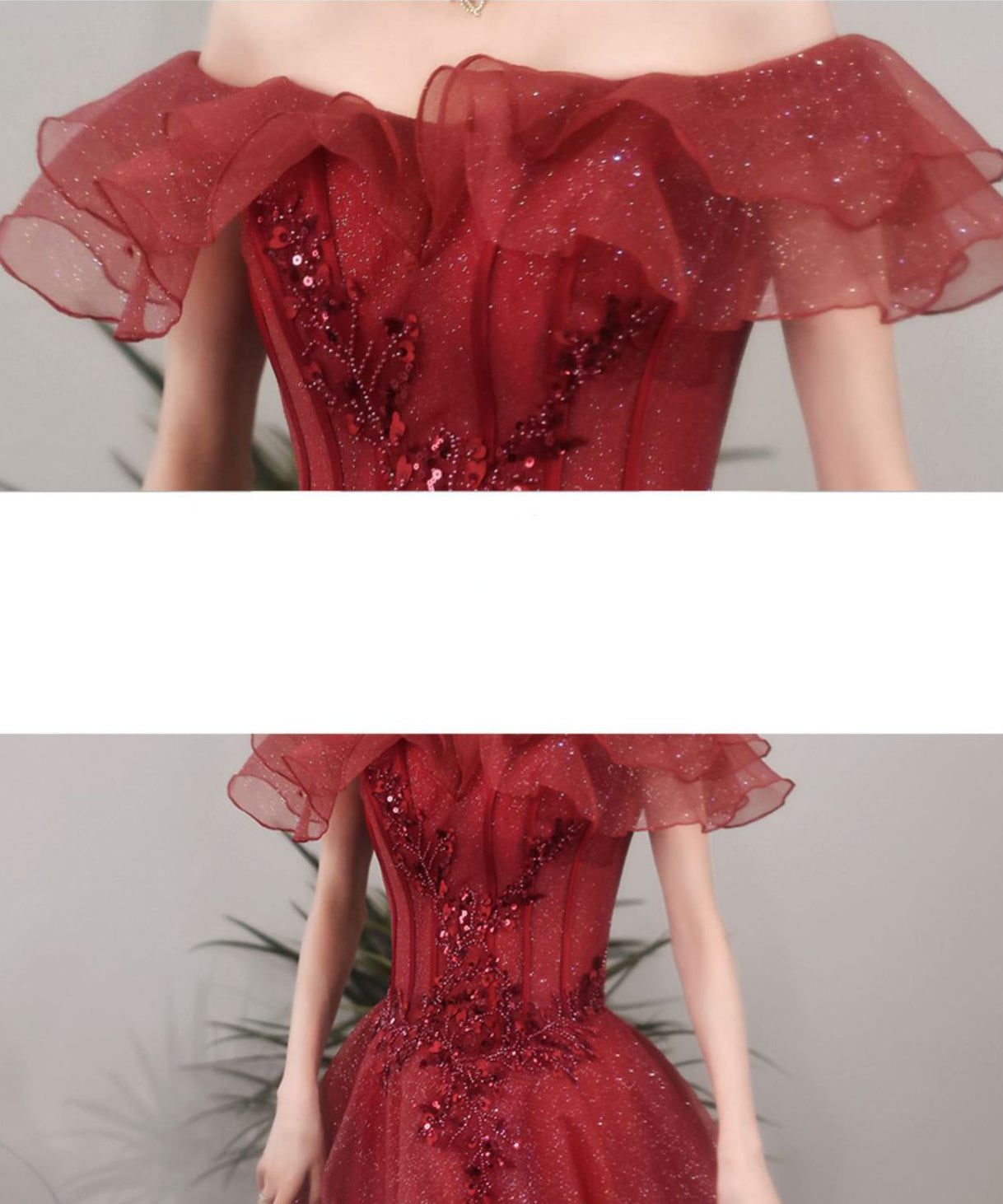 ナイトドレス 宴会 ロングドレス キラキラ お姫様 オフショルダー 誕生日 パーティー 演奏会 XH2-YXSZ10/16