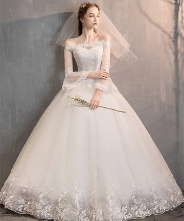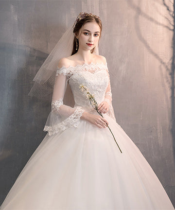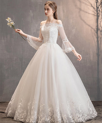 ナイトドレス 華奢感 ゴージャス ウエディングドレス フレア袖 披露宴 結婚式 演奏会 発表会XH2-CCHQ2001