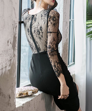 ハイウエスト キャバドレス レース Ⅴネック セクシー 谷間魅せ XH2-ZED885489HF225A