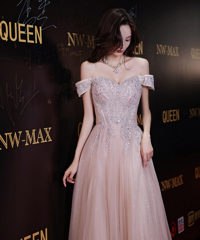 バースデーロングドレス 宴会 パーティー 演奏会 オフショルダーフ キラキラ XH2-YWL4/17