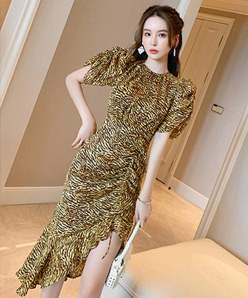 ヒョウ柄 ロングドレス セクシードレス 披露宴 パーティー用 上品 LT2-JY4973
