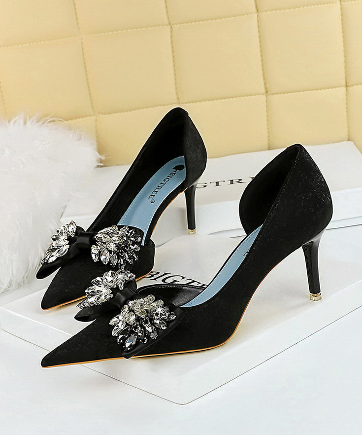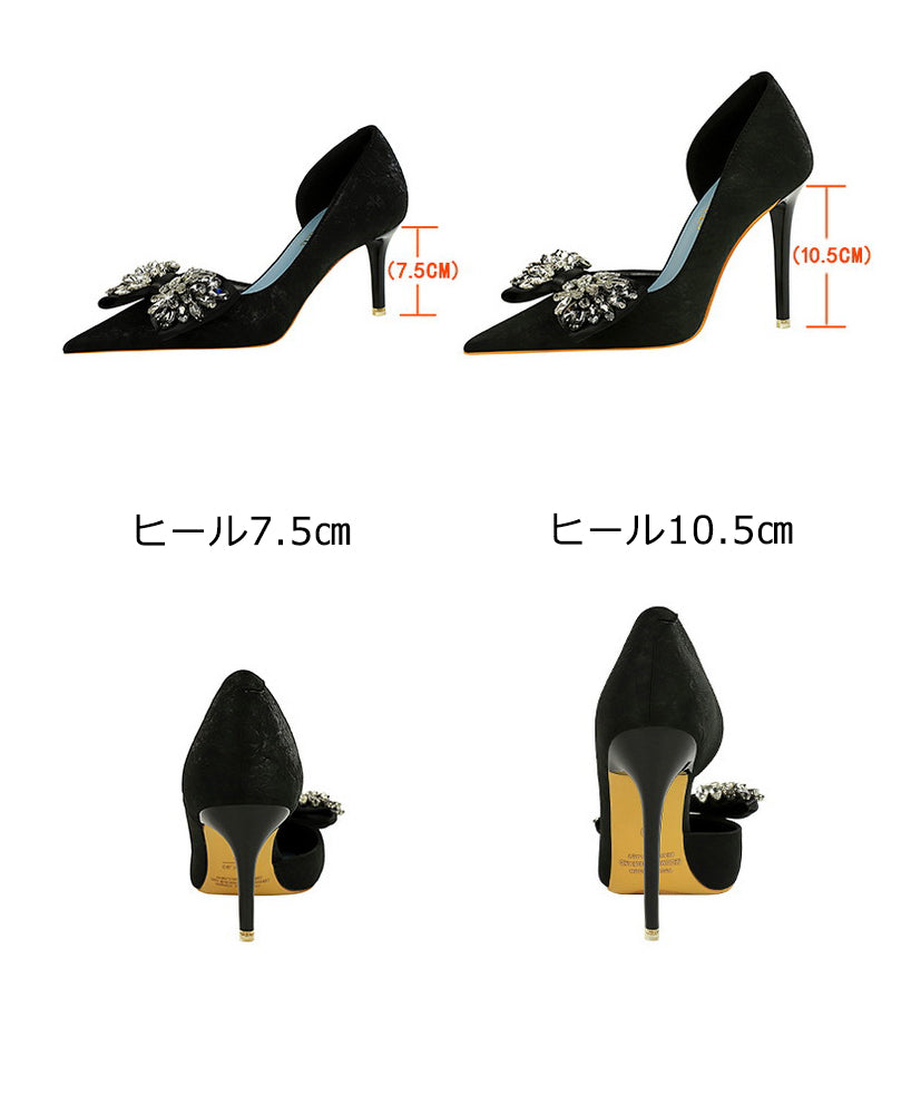 【ヒール10.5CM/7.5CM】ハイヒール パンプス 高見え 新作 ゴージャス ピカピカ リボン MY5-6168-H3