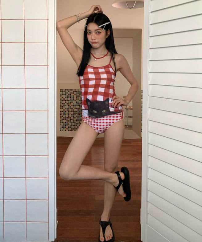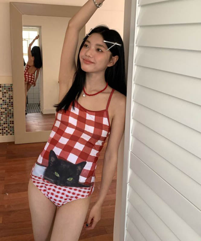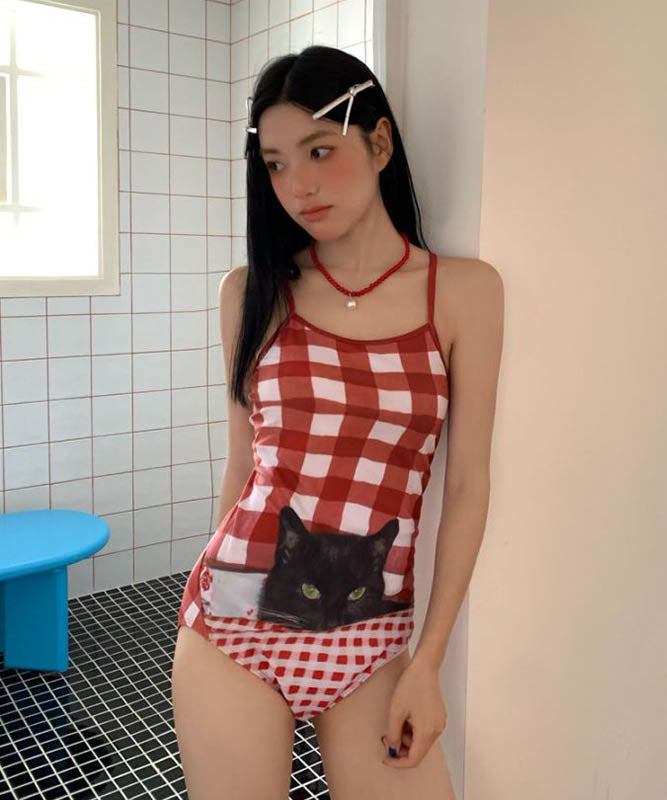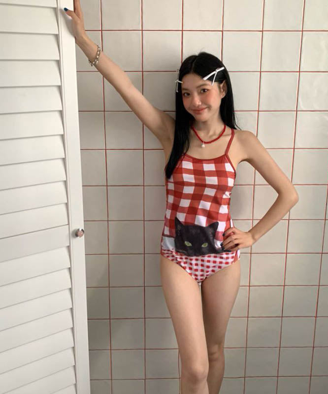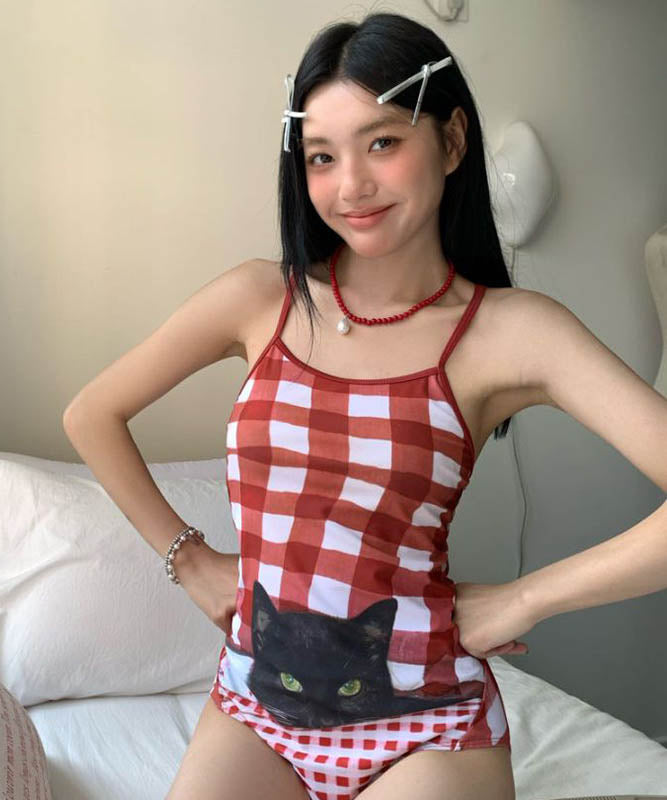 ビキニ水着モノキニ体型カバーリボン温泉ネコちゃん大人可愛い海ビーチ旅行セクシー猫柄 WQ7-CQ5