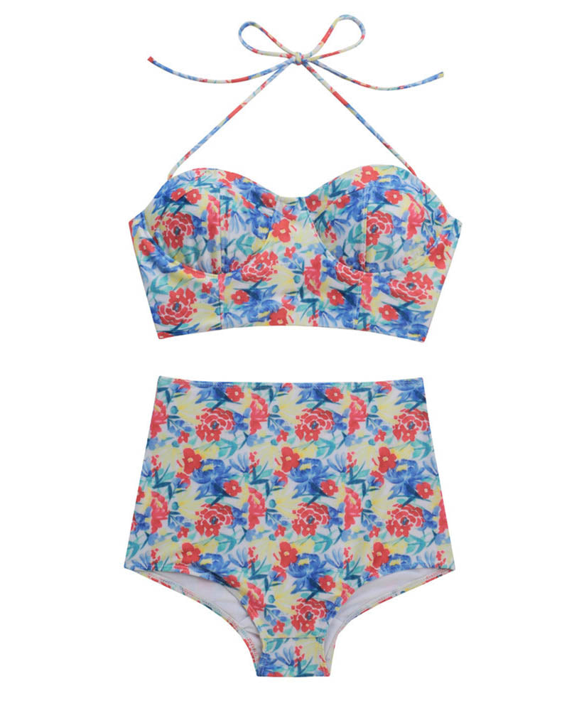 上下セットビキニ水着花柄ハイウエストセクシーホルターネックモノキニ体型カバービーチ海 WQ7-XYX-Q82312