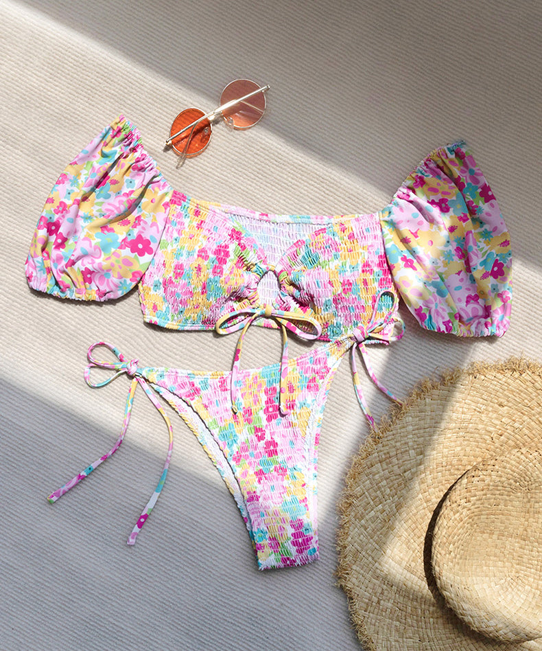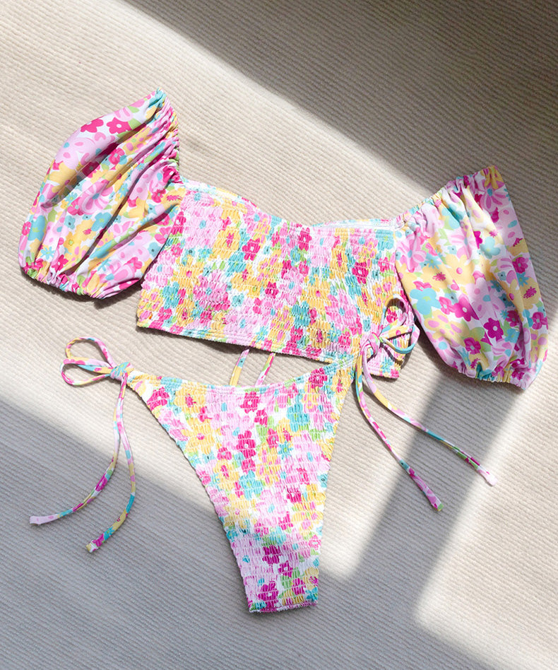 ビキニ セクシー 花柄 温泉 パフスリーブ 水着 海辺 INS話題 XH7-ZH220397