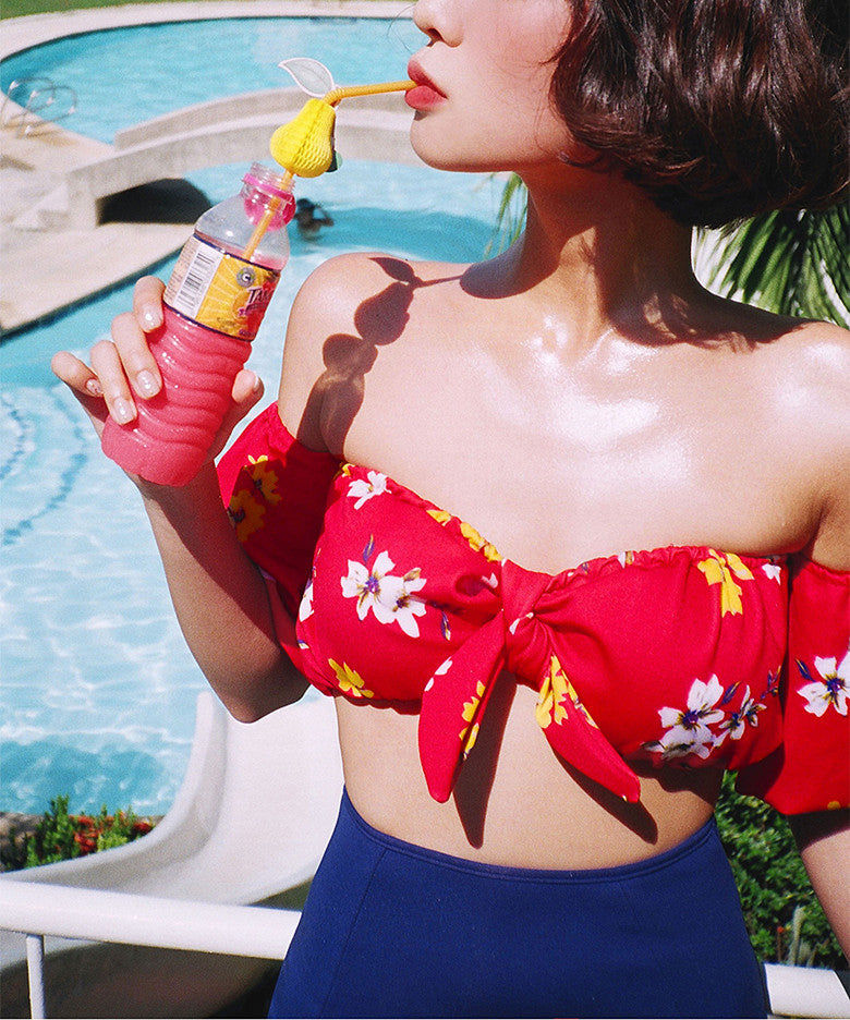 ビキニ 花柄 水着 セクシー 温泉 モノキニ リボン 大人可愛い 着瘦せ XH7-YZM-XF