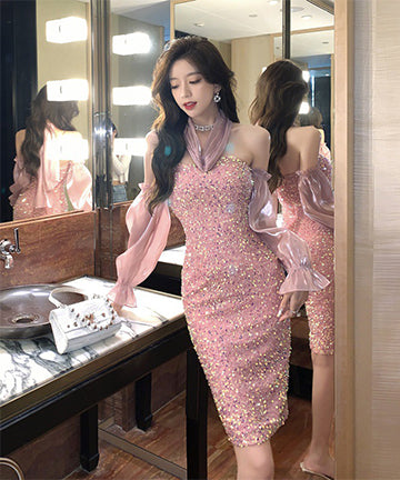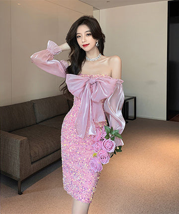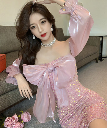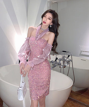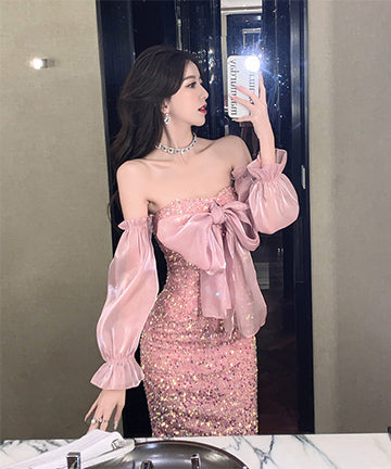 ピカピカ 可愛い キャバドレス セクシー ベアトップ 指名 ナイトドレス 宴会 XH2-ZED885258DXH418
