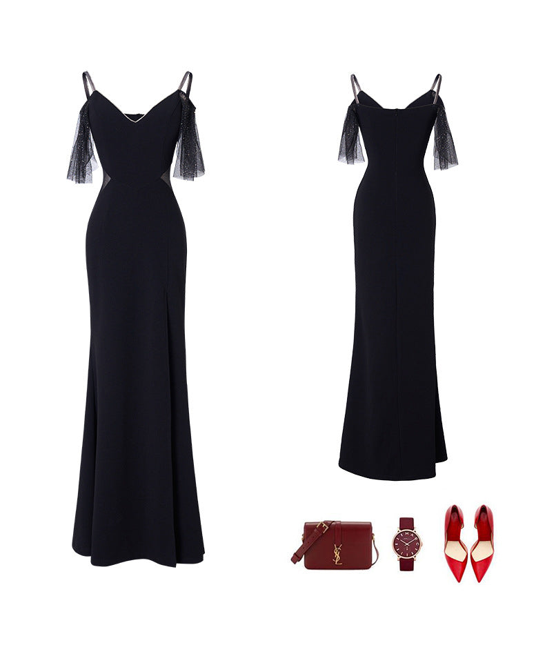 【ブラック&ホワイト】ロングドレス ミニドレス 新作 ゴージャス 肌見せ セクシー MY2-XYD2319