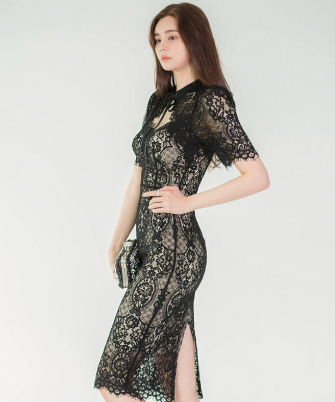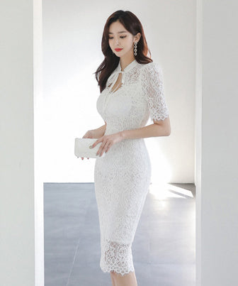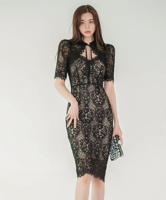 【ホワイト/ブラック】キャバドレス パーティードレス 新作 レース ゴージャス MY2-ZED887329A71