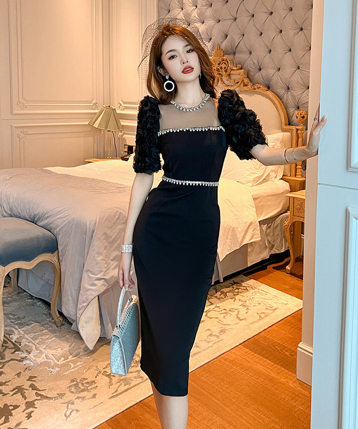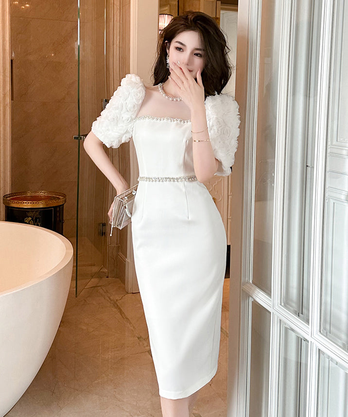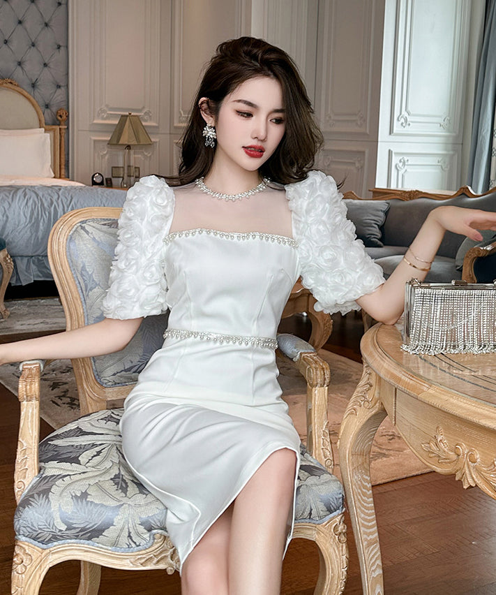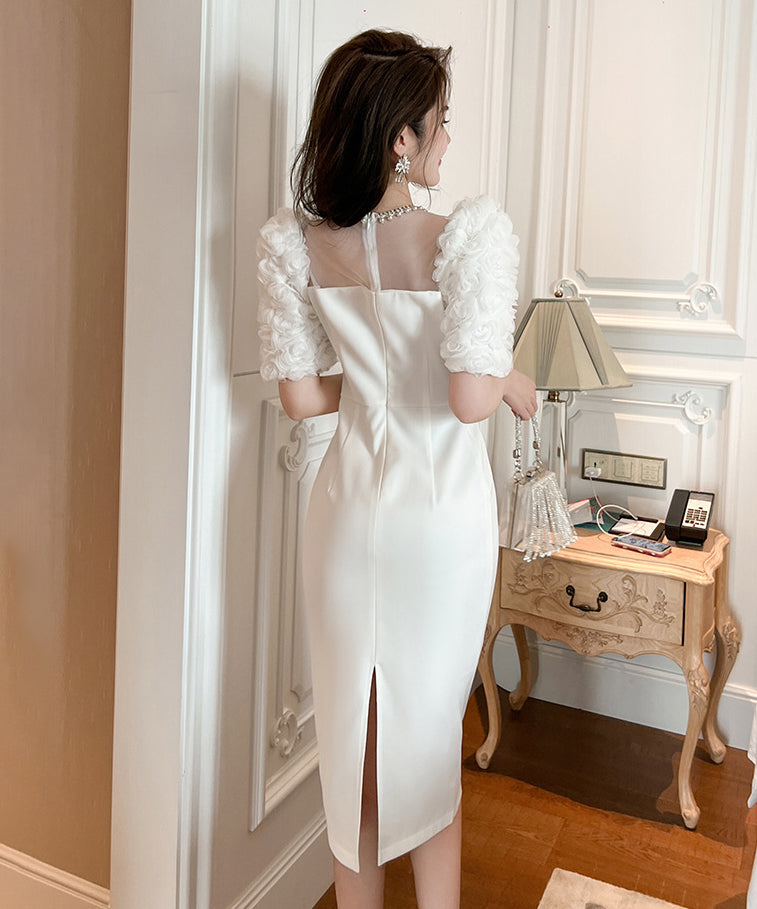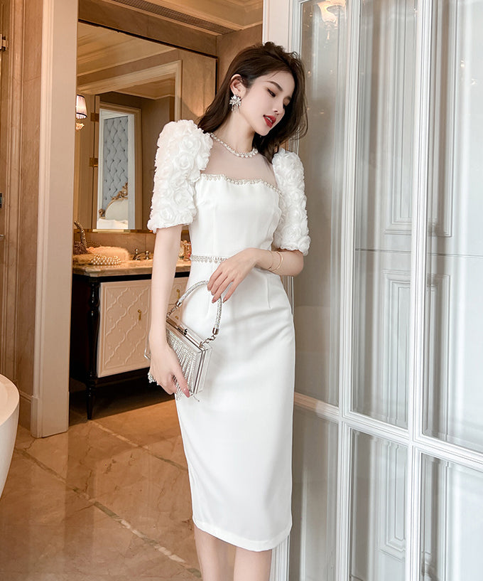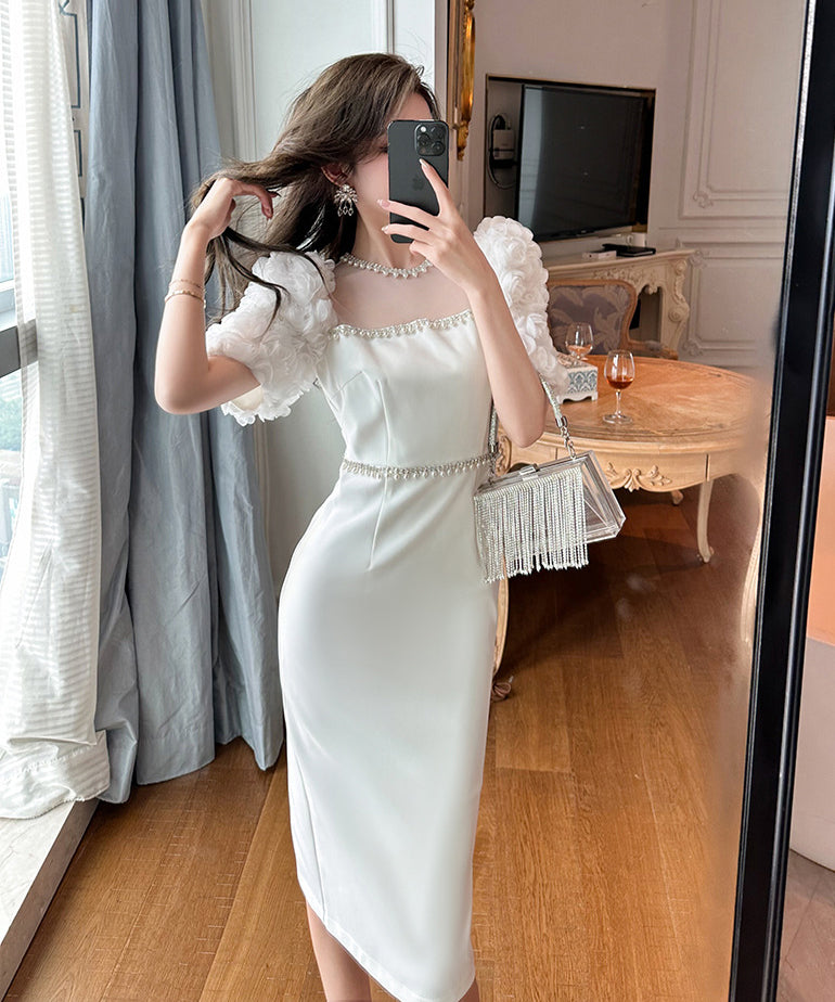 【ホワイト&ブラック】ドレス ひざ丈ドレス 新作 かわいい キラキラ肌見せ MY2-JY50106