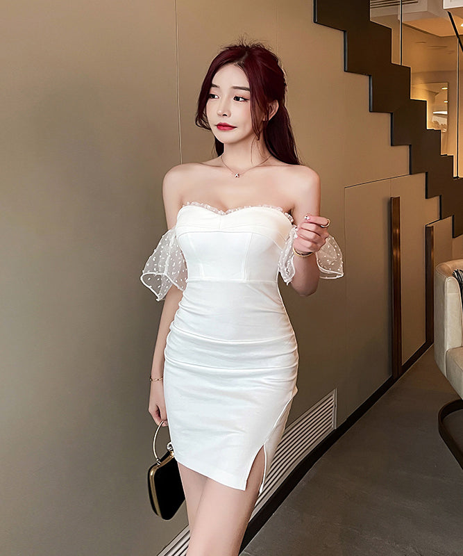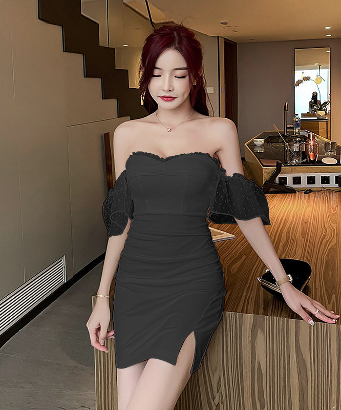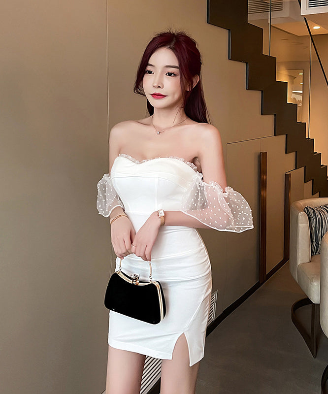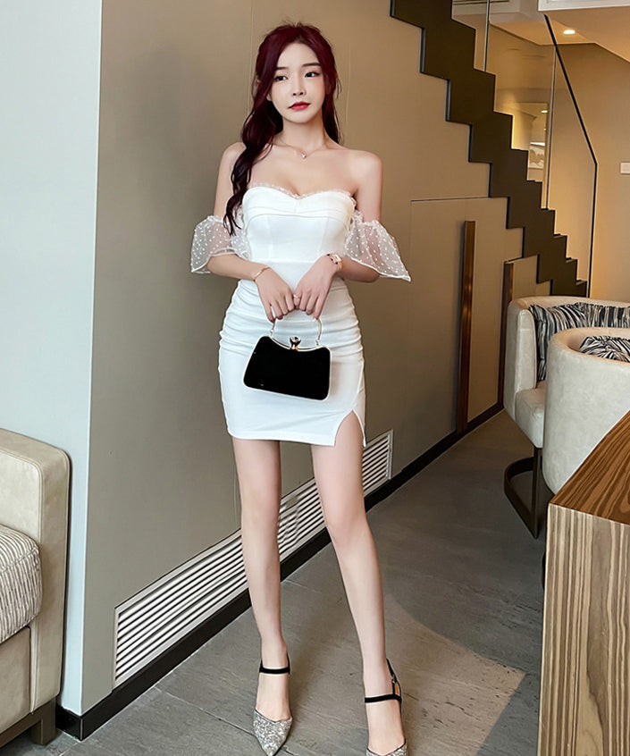 【ホワイト・ブラック】ミニドレス キャバドレス セクシー 新作 オフショルダー my2-ym8712
