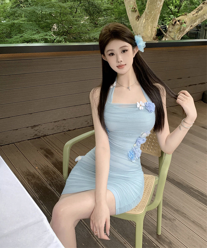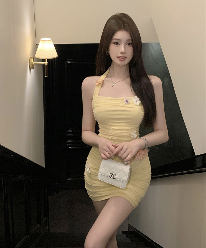 ミニドレスキャバドレスタイトドレスホルターネックフラワーカワセクシーエレガントパーティーXH2-DD4103