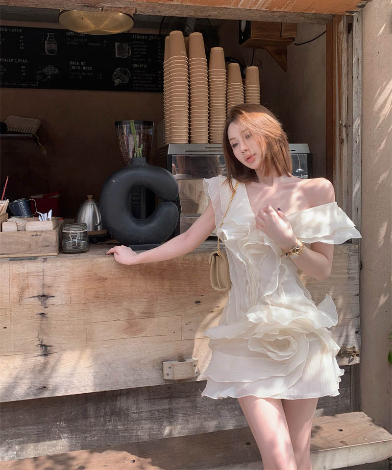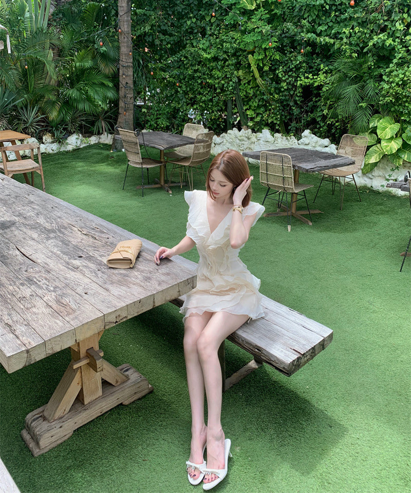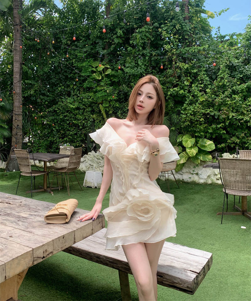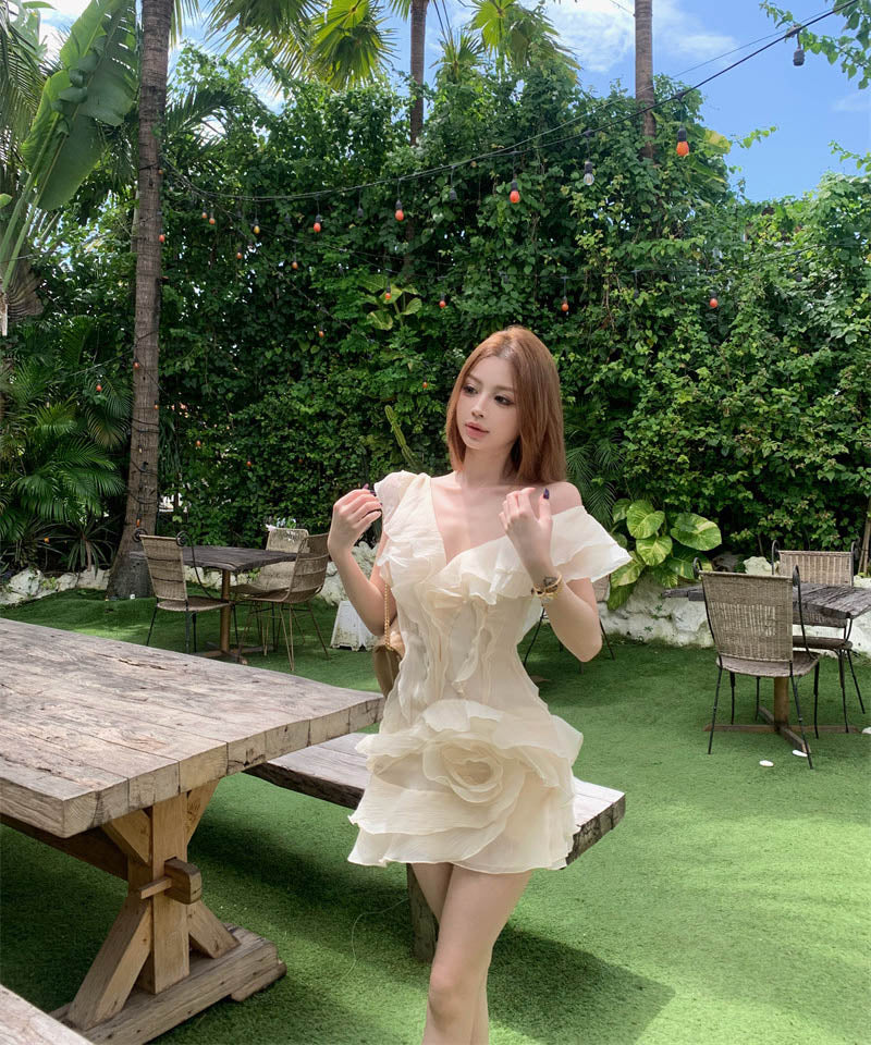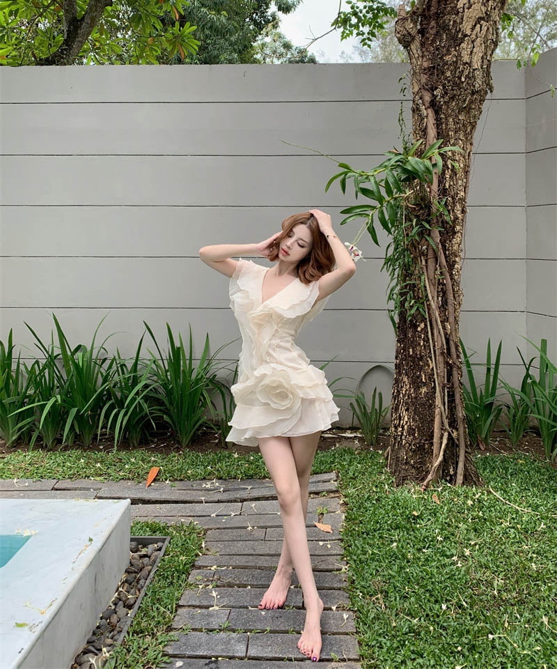 ミニドレスキャバドレスフリル個性感Vネック谷間見せエレガント大人可愛いセクシーフラワー WQ2-XKD-HS-109-8159-Apr11