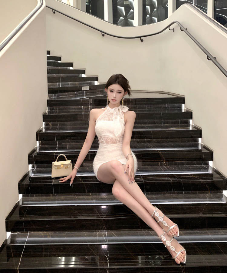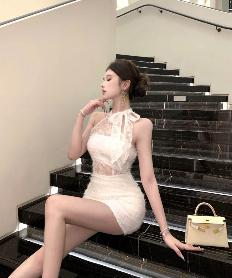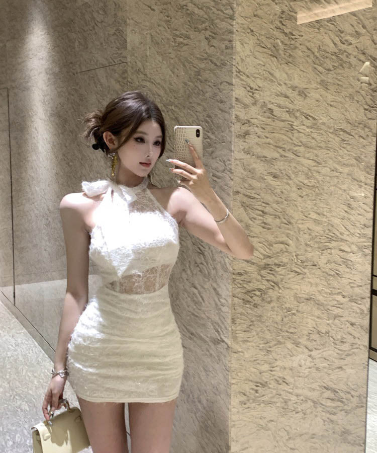 ミニドレスキャバドレスホルターネックレースバックレスドレスセクシーリボン WQ2-ZED882518DXH437A