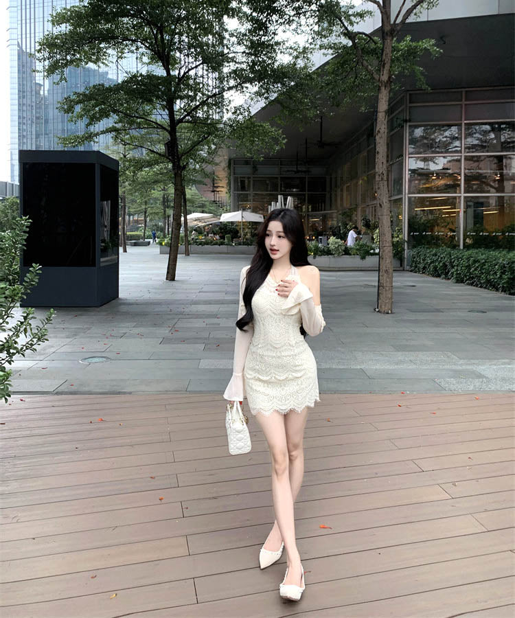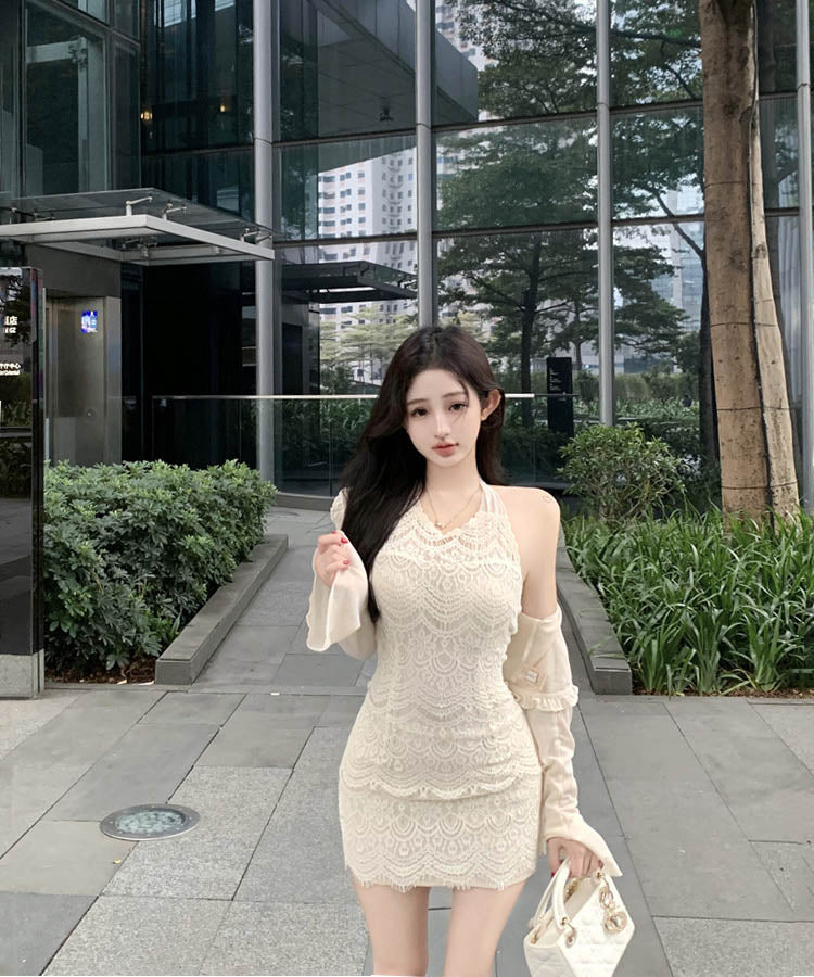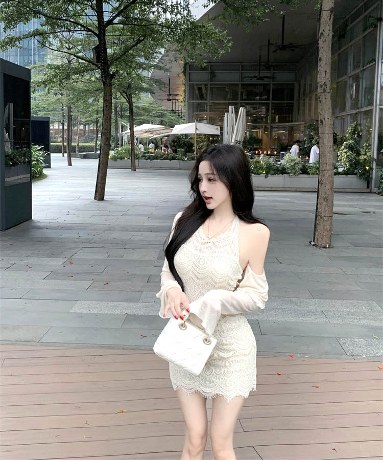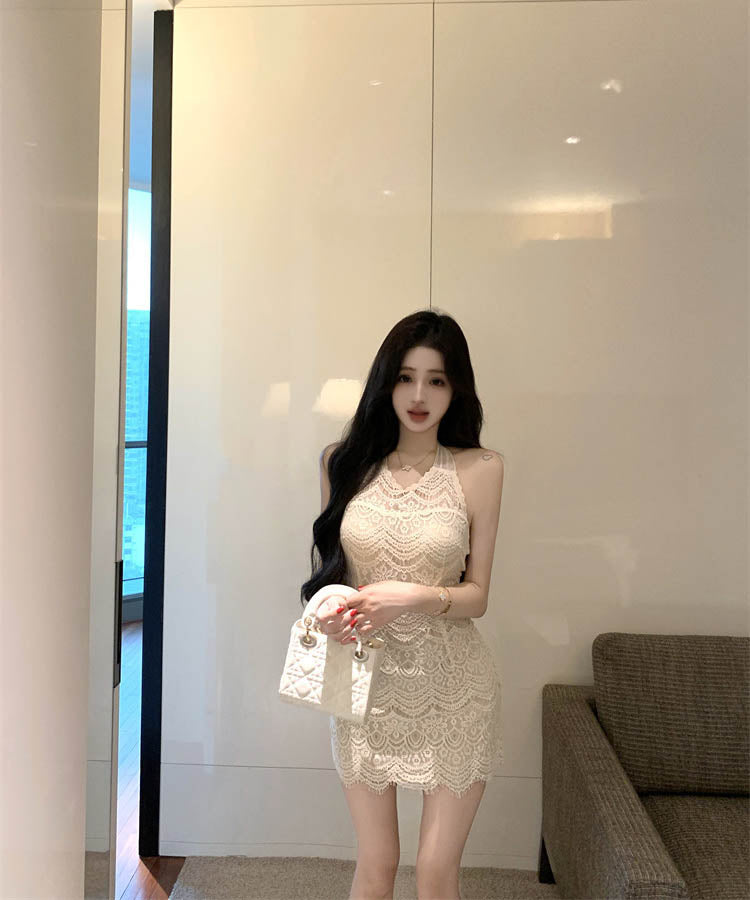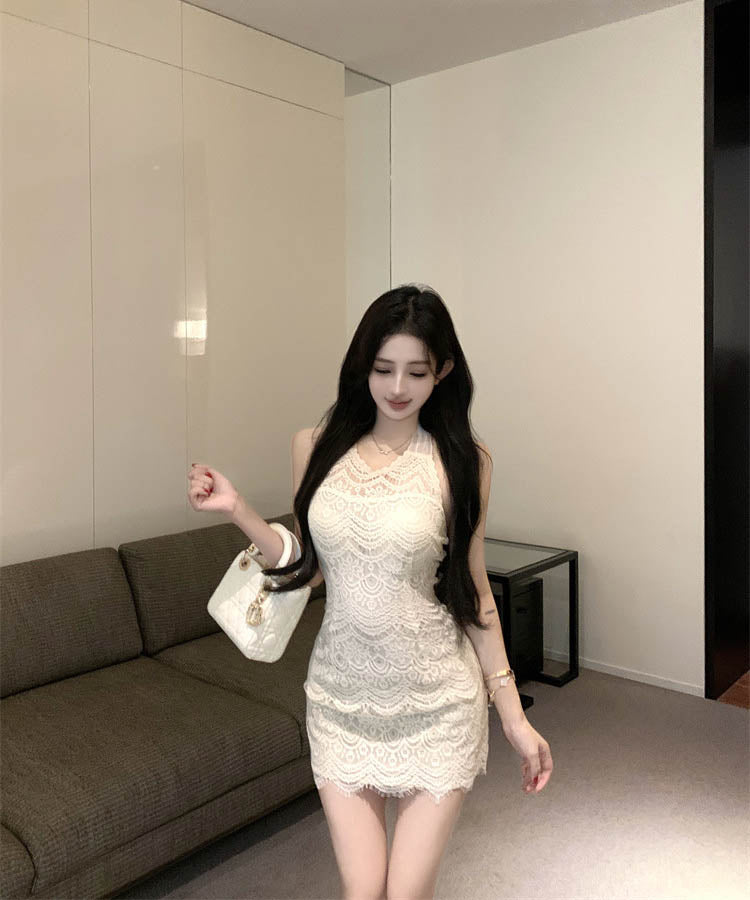 ミニドレスキャバドレスレースホルターネックタイトドレスパーティーナイトクラブセクシーバックレスドレス高級感 WQ2-ZED882368DXH437A