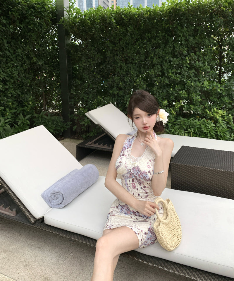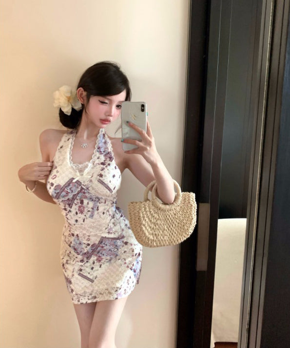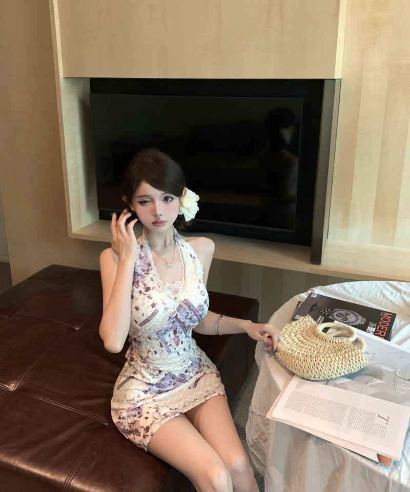 ミニドレスキャバドレスレースホルターネックバックレスドレスセクシーパーティー女子力 WQ2-MXX753
