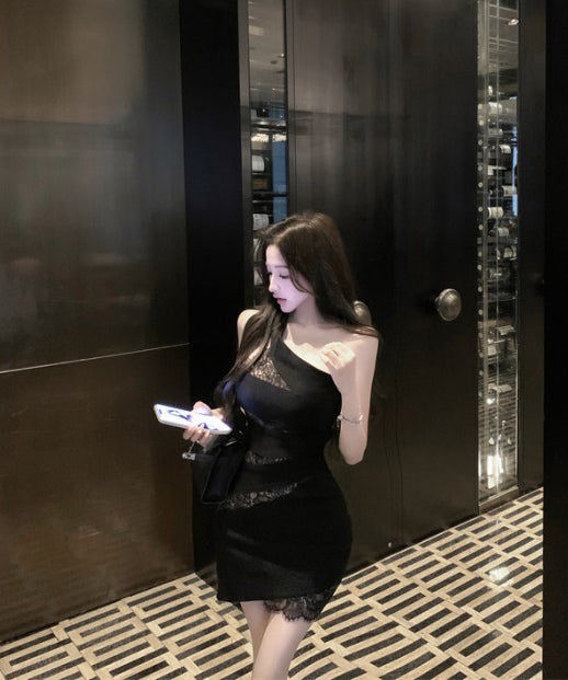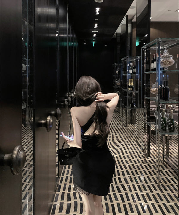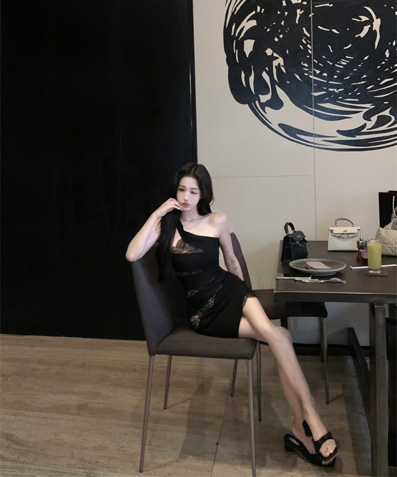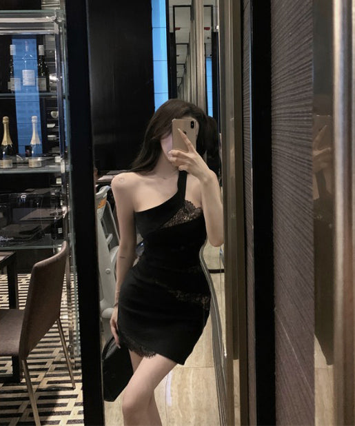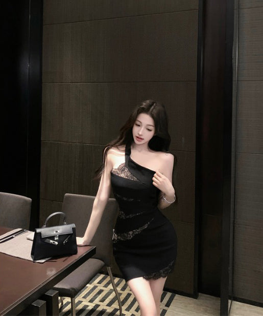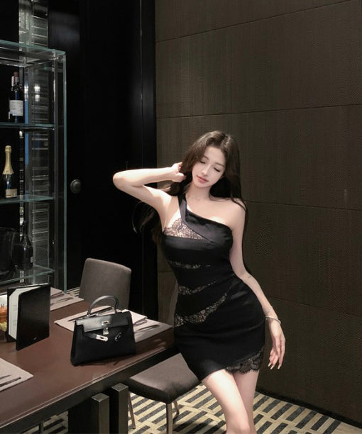 ミニドレスキャバドレスワンーショルダーレースセクシー非対称パーティーナイトクラブ指名 WQ2-MXX2215