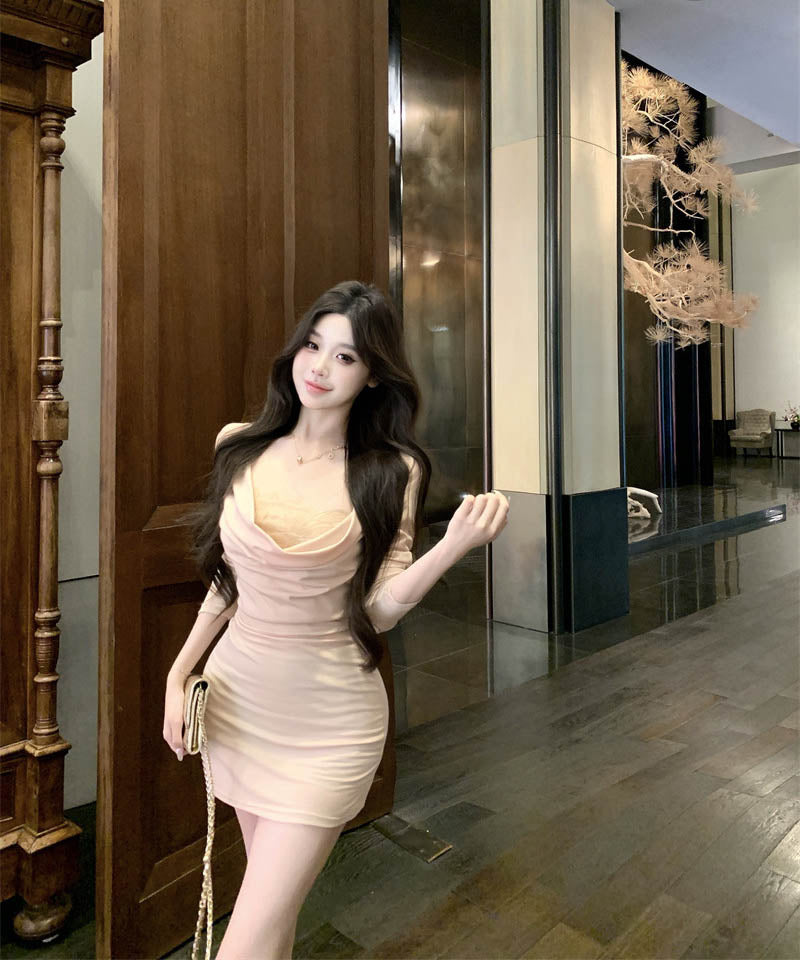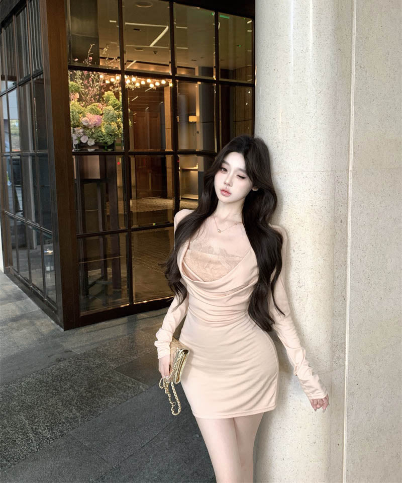ミニドレスキャバドレス袖付きレース谷間見せナイトクラブキャバクラカワセクシー指名 WQ2-XKD-D435A-6077-Apr16