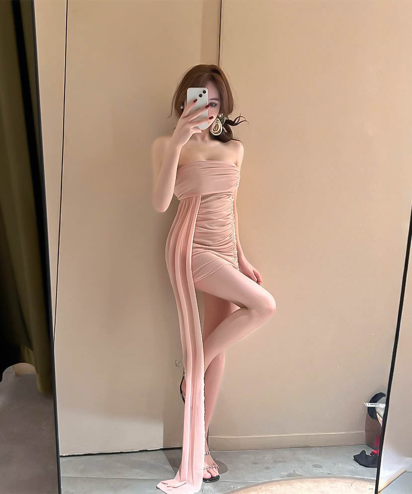 Vネック 肌見せ 谷間魅せ 魅了 指名 ミニドレスキャバドレスYN2207-YM8495
