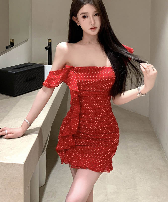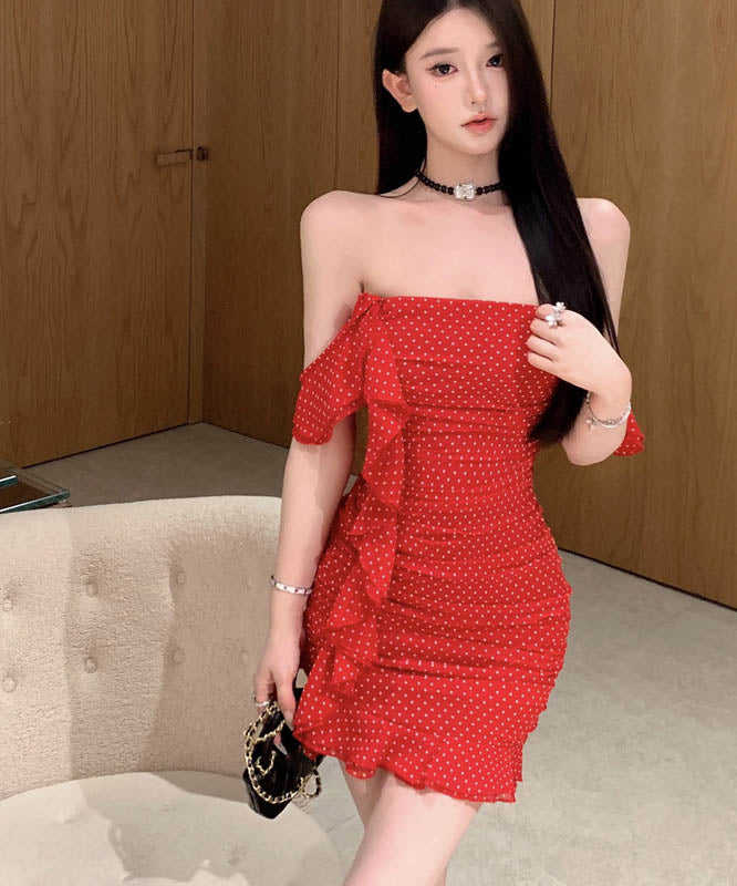 ミニドレスベアトップキャバクラフリル水玉柄セクシーパーティーナイトクラブ大人可愛い姉っぽ WQ2-CD7-328-66360650