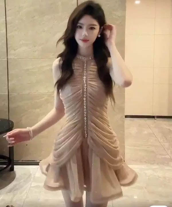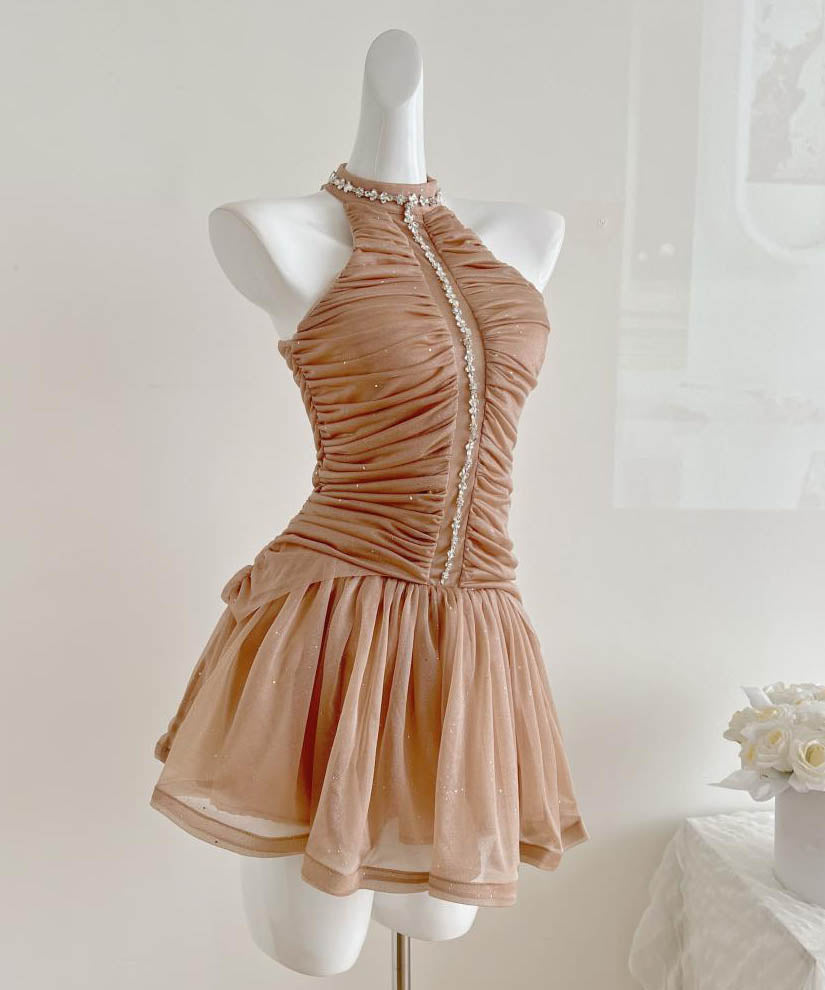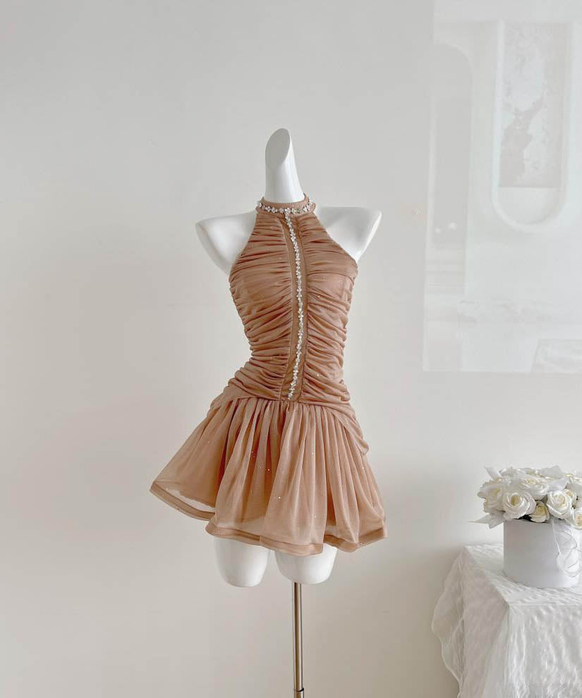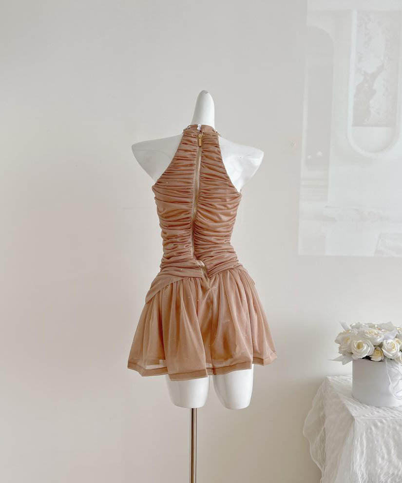 ミニドレスホルターネック宴会パーティーキラキラAライン着痩せ気質韓国っぽセクシー大人可愛い WQ2-XHY918136