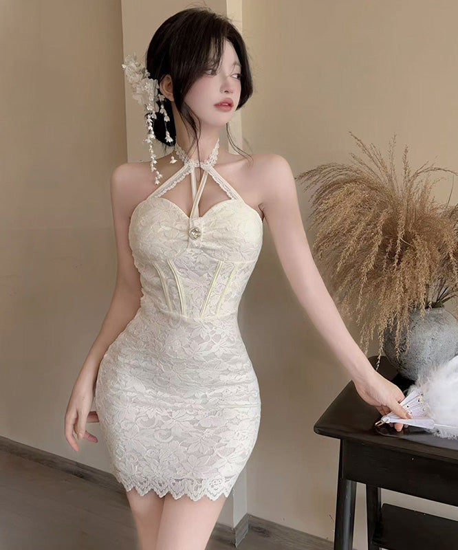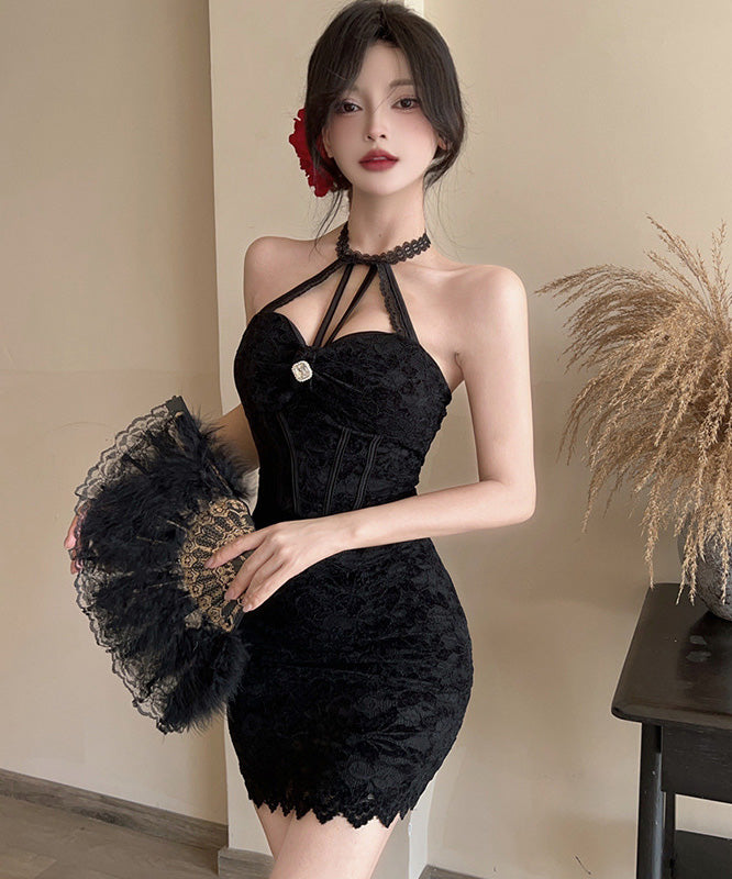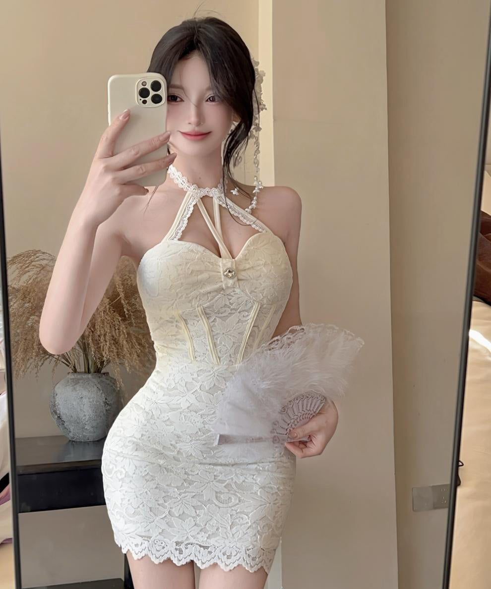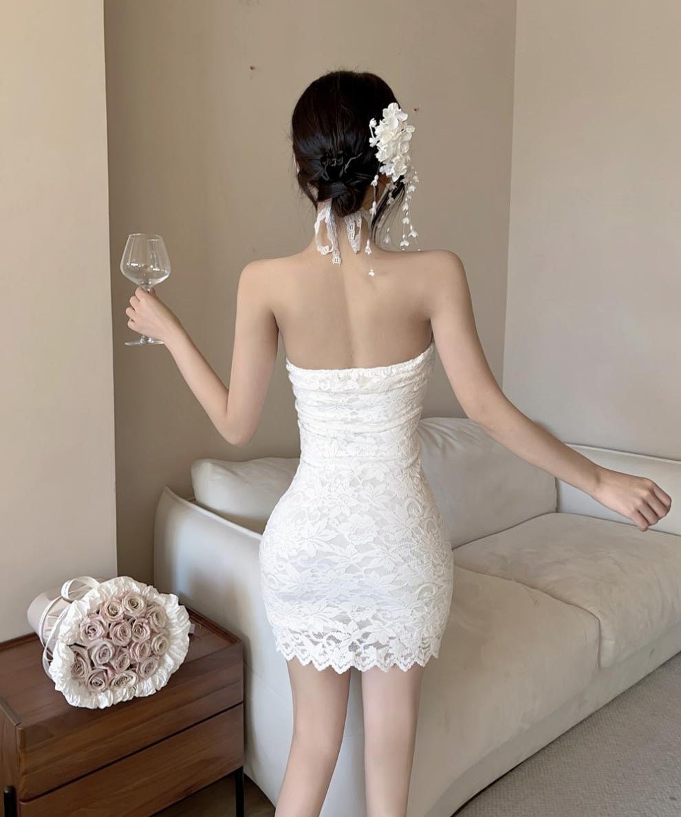 【2色】 ミニドレス セクシー キャバドレス レース ホルターネック ナイトクラブ タイトドレス パーティー ホルターネック WQ2-ZED885246BH453