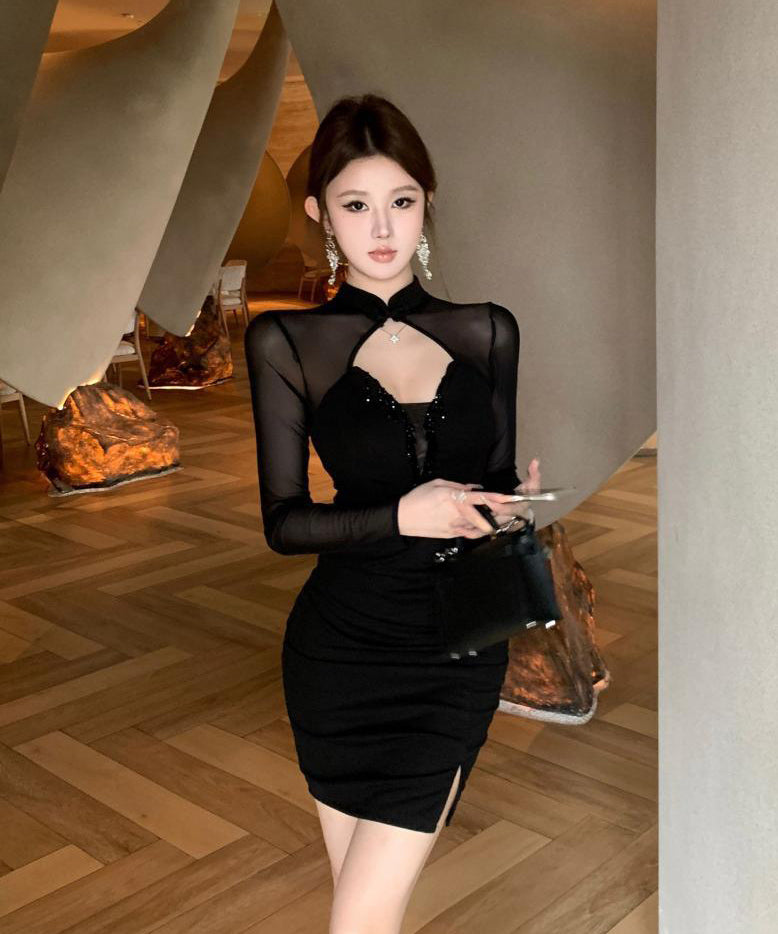 ミニドレスレース セクシー 透明感 エレガント 気質 宴会 袖付き 大人可愛い KS2-ZED888579DXH238A