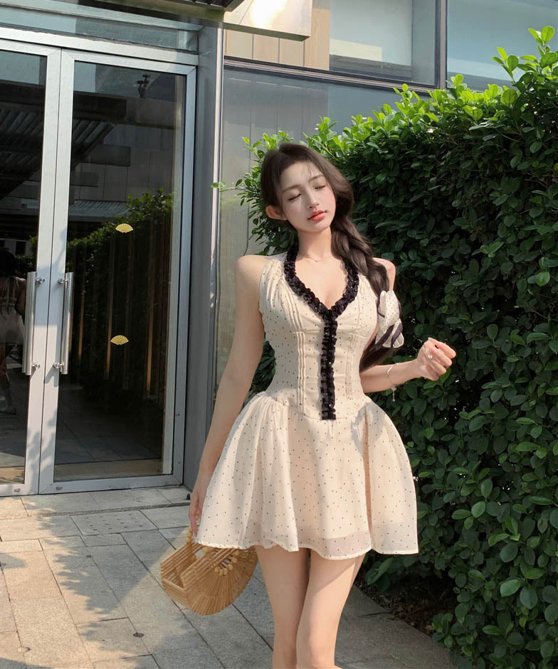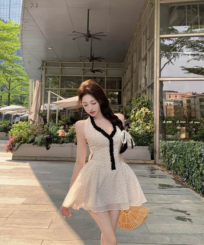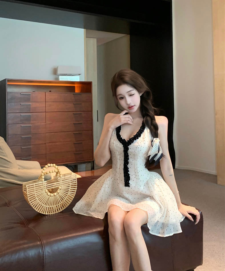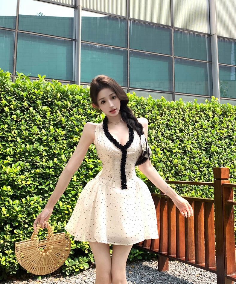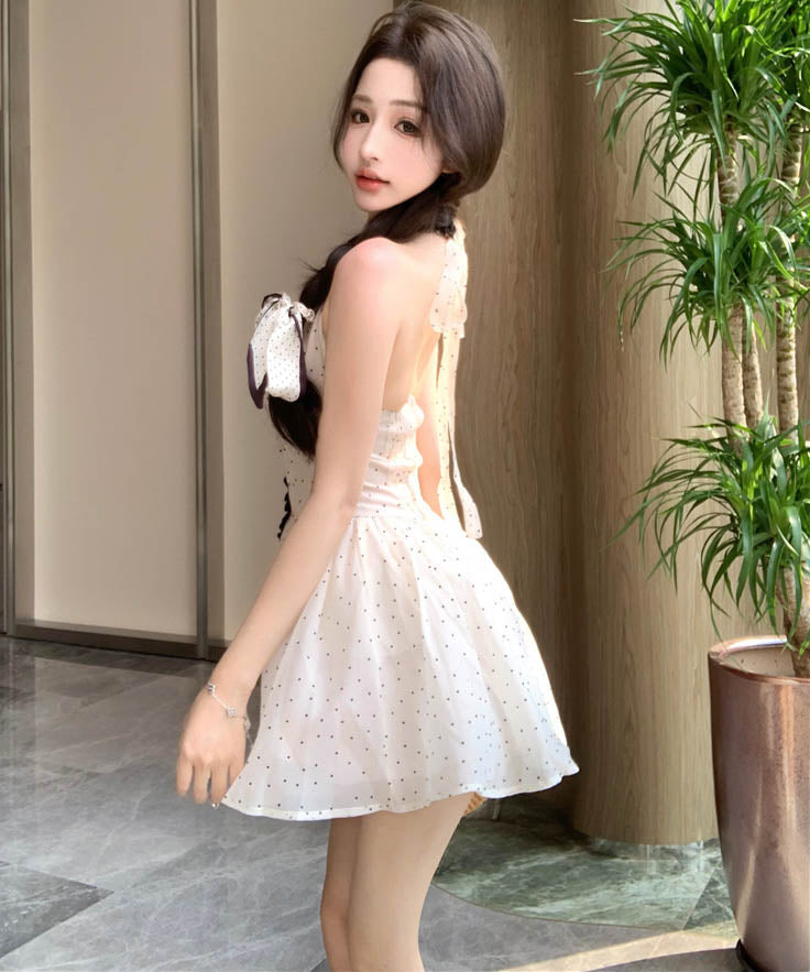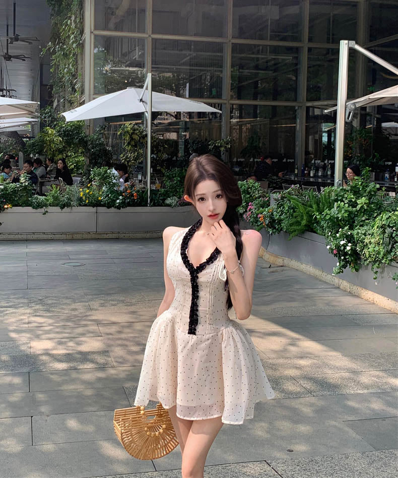 ミニドレス水玉柄谷間見せキャバドレスAライン着痩せ気質エレガントセクシー大人可愛い韓国っぽ WQ2-XKD-D310-3362-Apr8