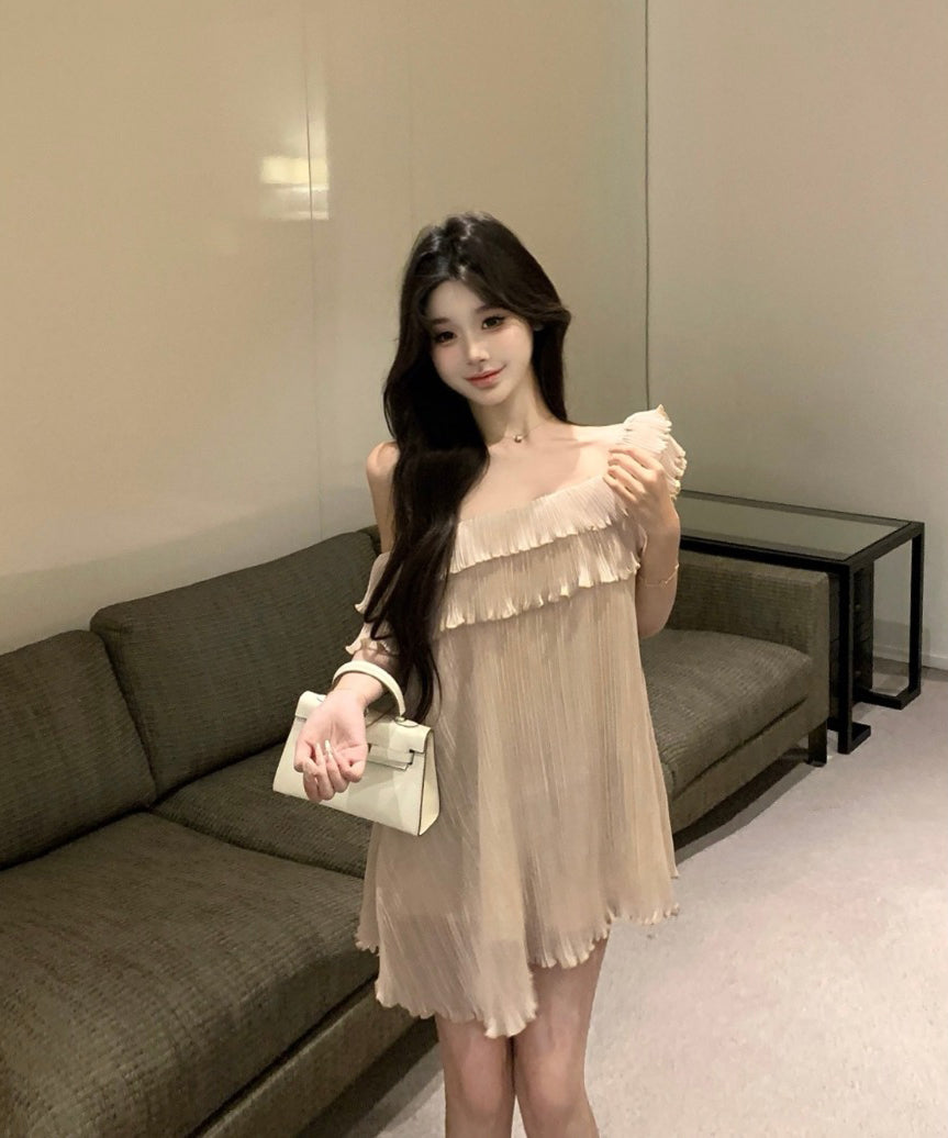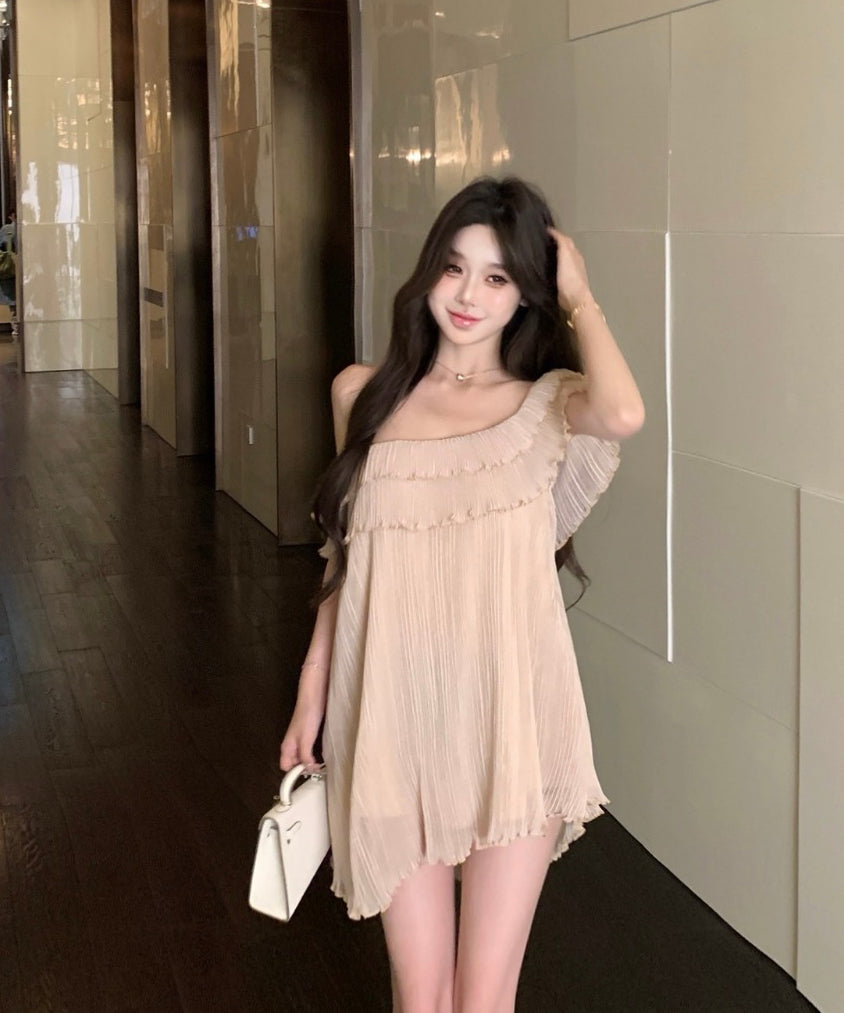 ミニドレス着痩せ気質ワンーショルダーセクシーエレガントフリル WQ2-MXX2543