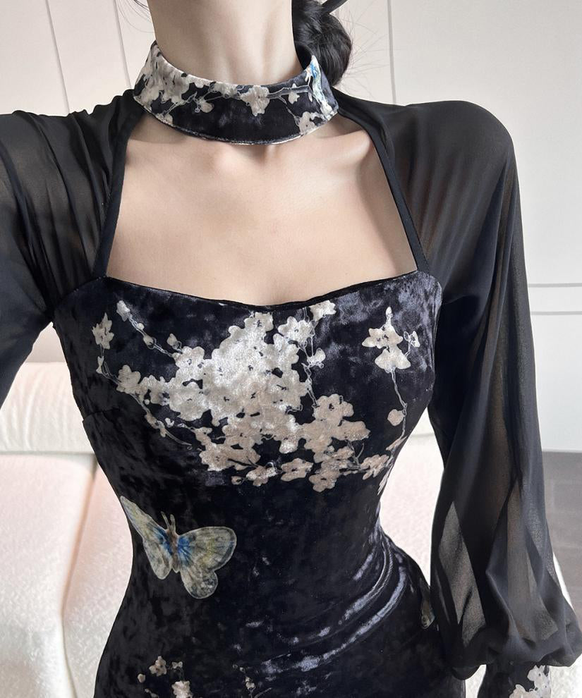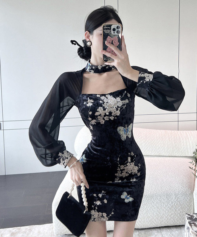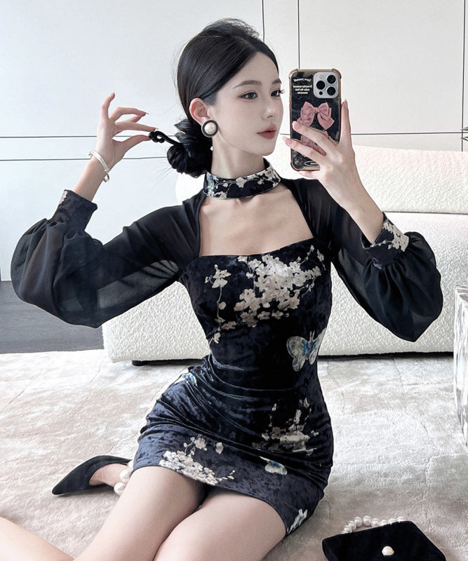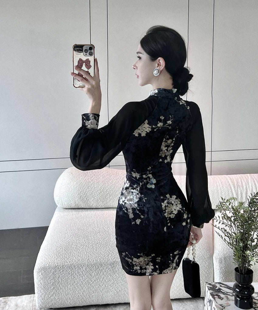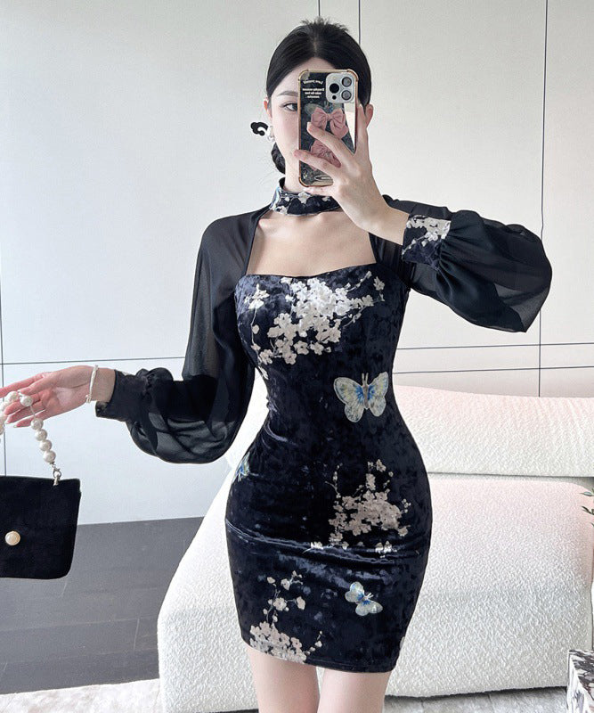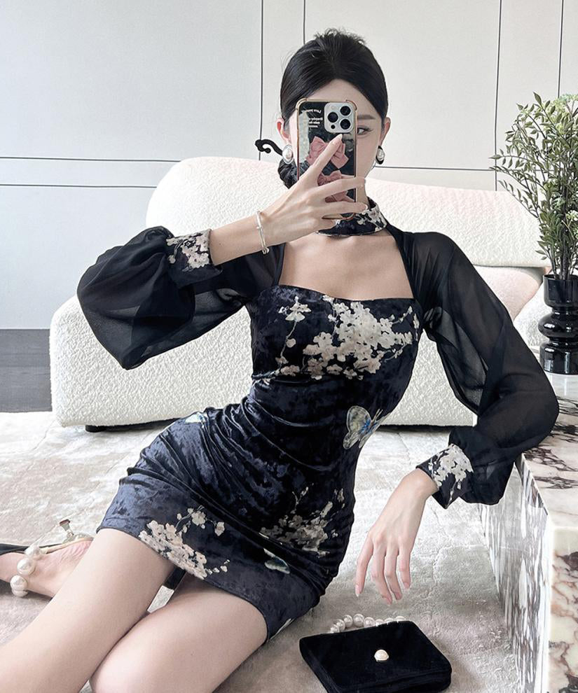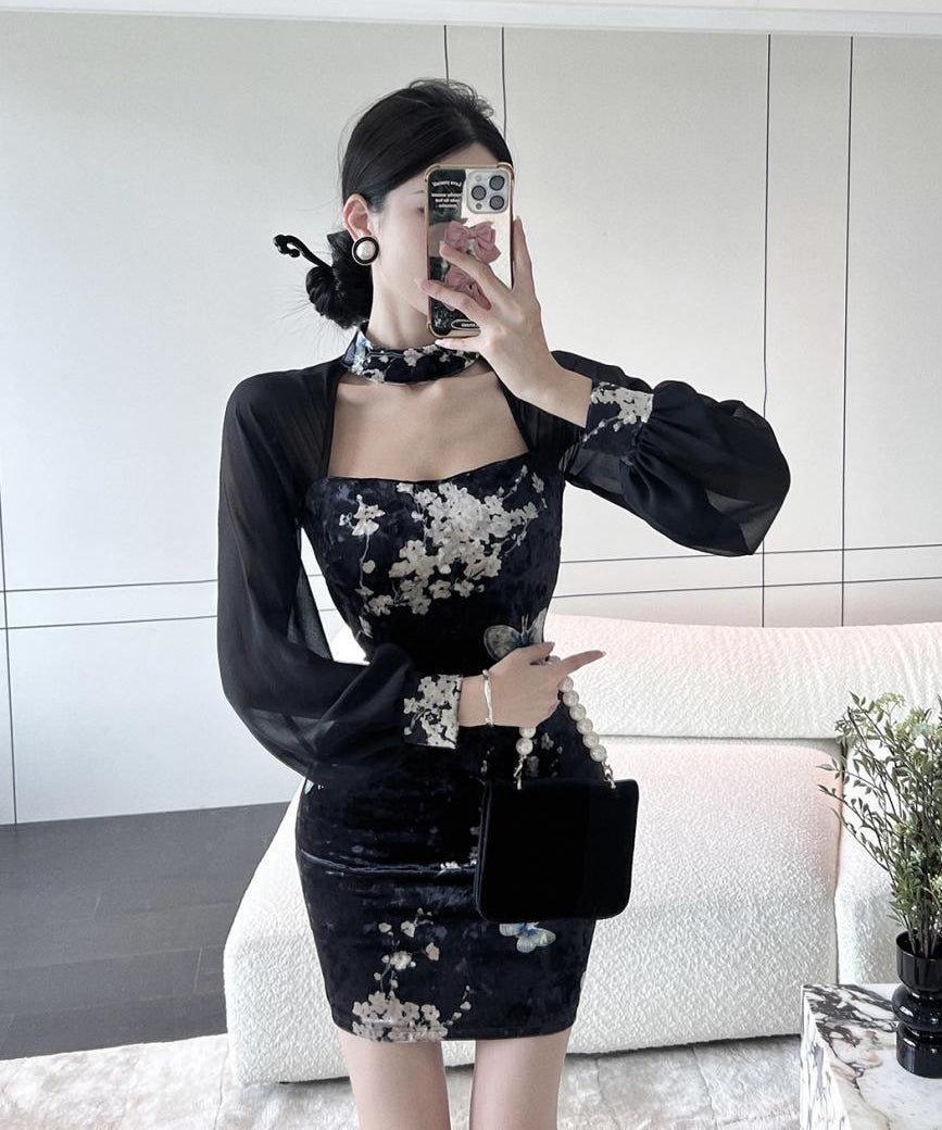 ミニドレス エレガント 気質 セクシー 着瘦せ 袖付き 花柄 XH2-LQE3101H349T