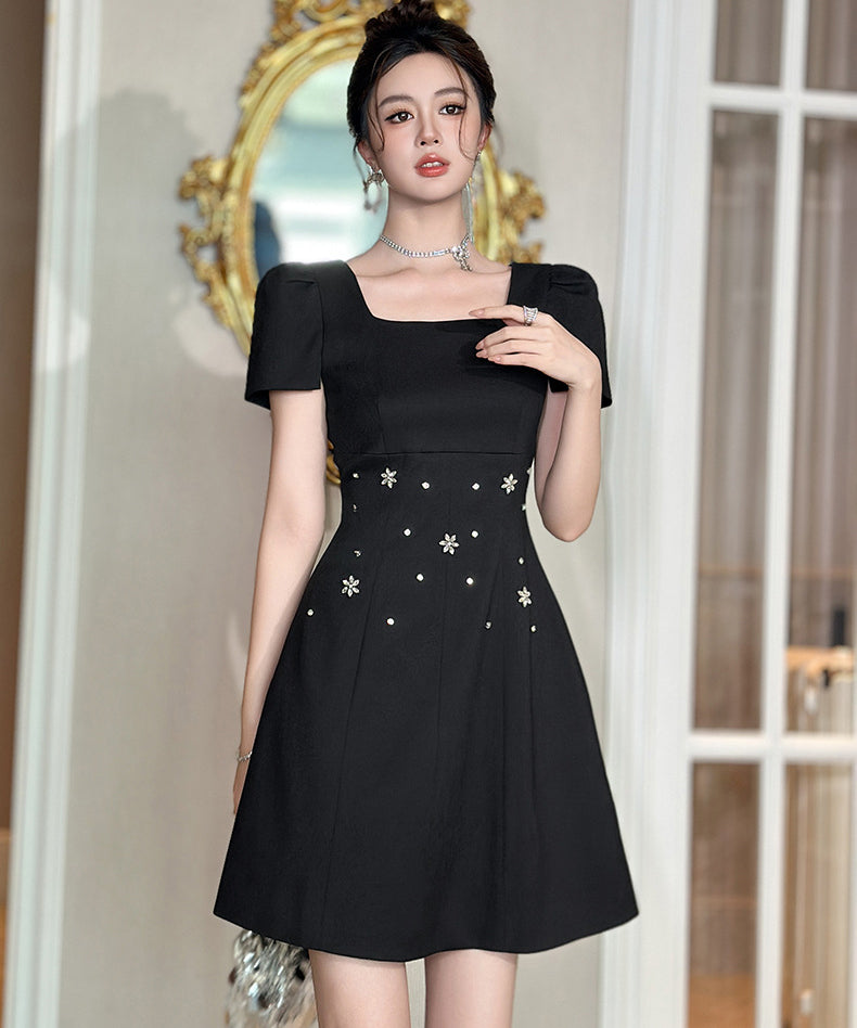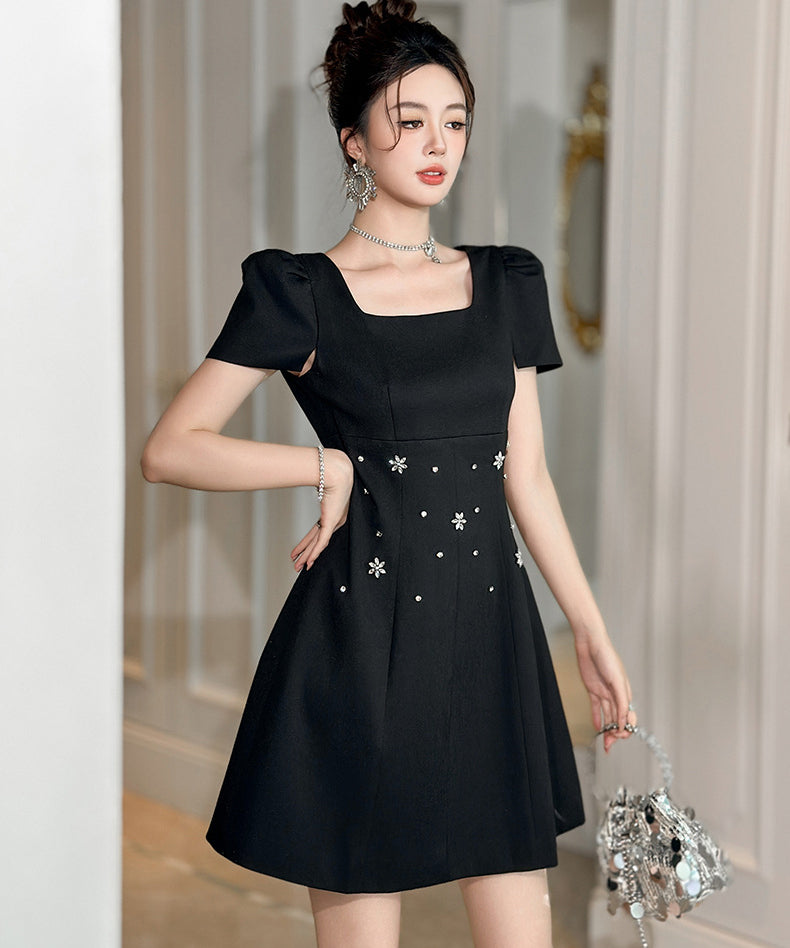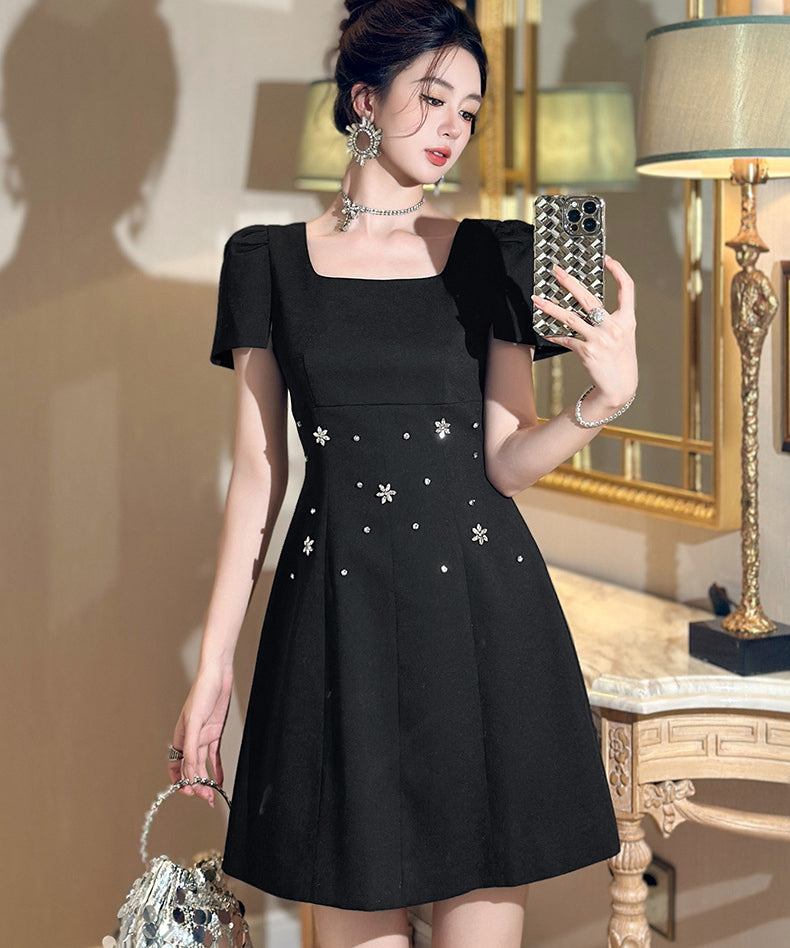 ミニドレス エンベリーワンピース ゴージャス キレイめ Aライン タイト ウエスト絞り ギャザリング 体型カバー 優雅 デート JC2-JY15436