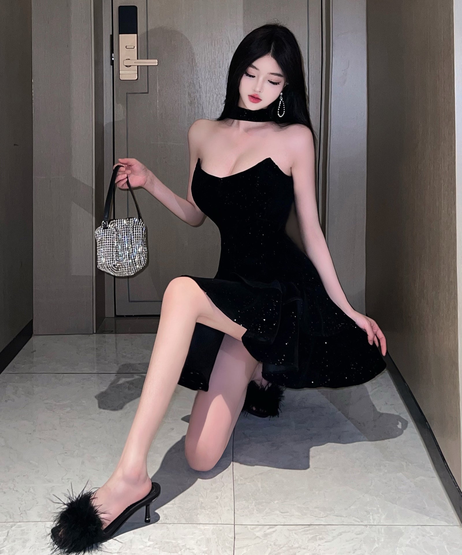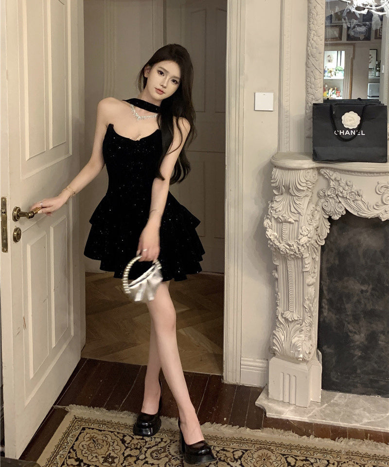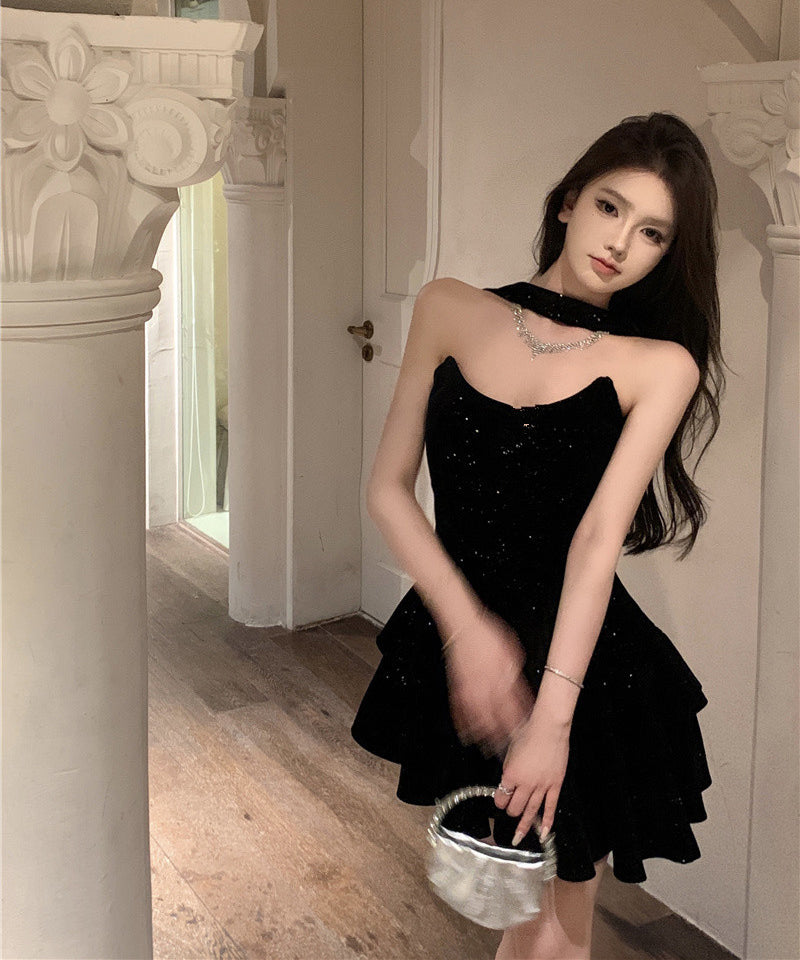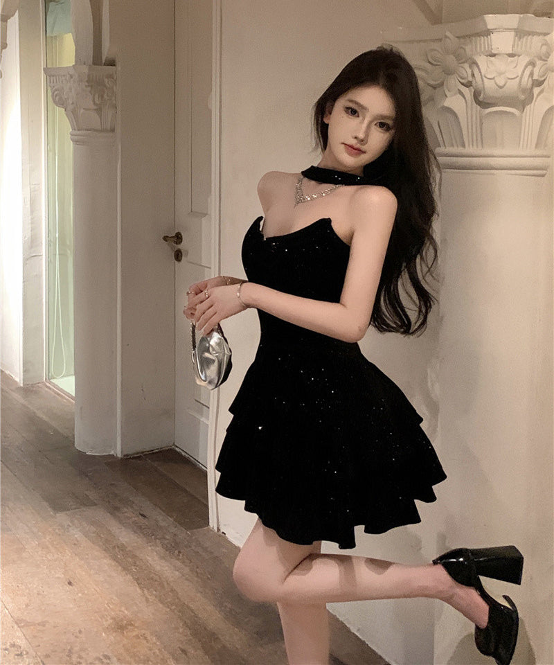 ミニドレス カワセクシー ティアードスカート 肌見せ パーティー 宴会 おしゃれ sweet dress XH2-DD4234
