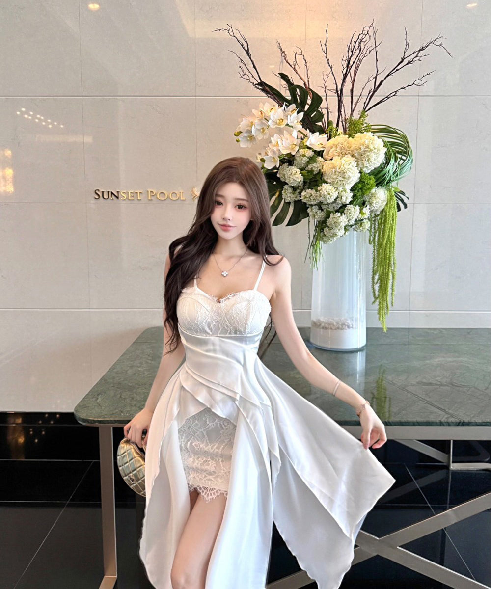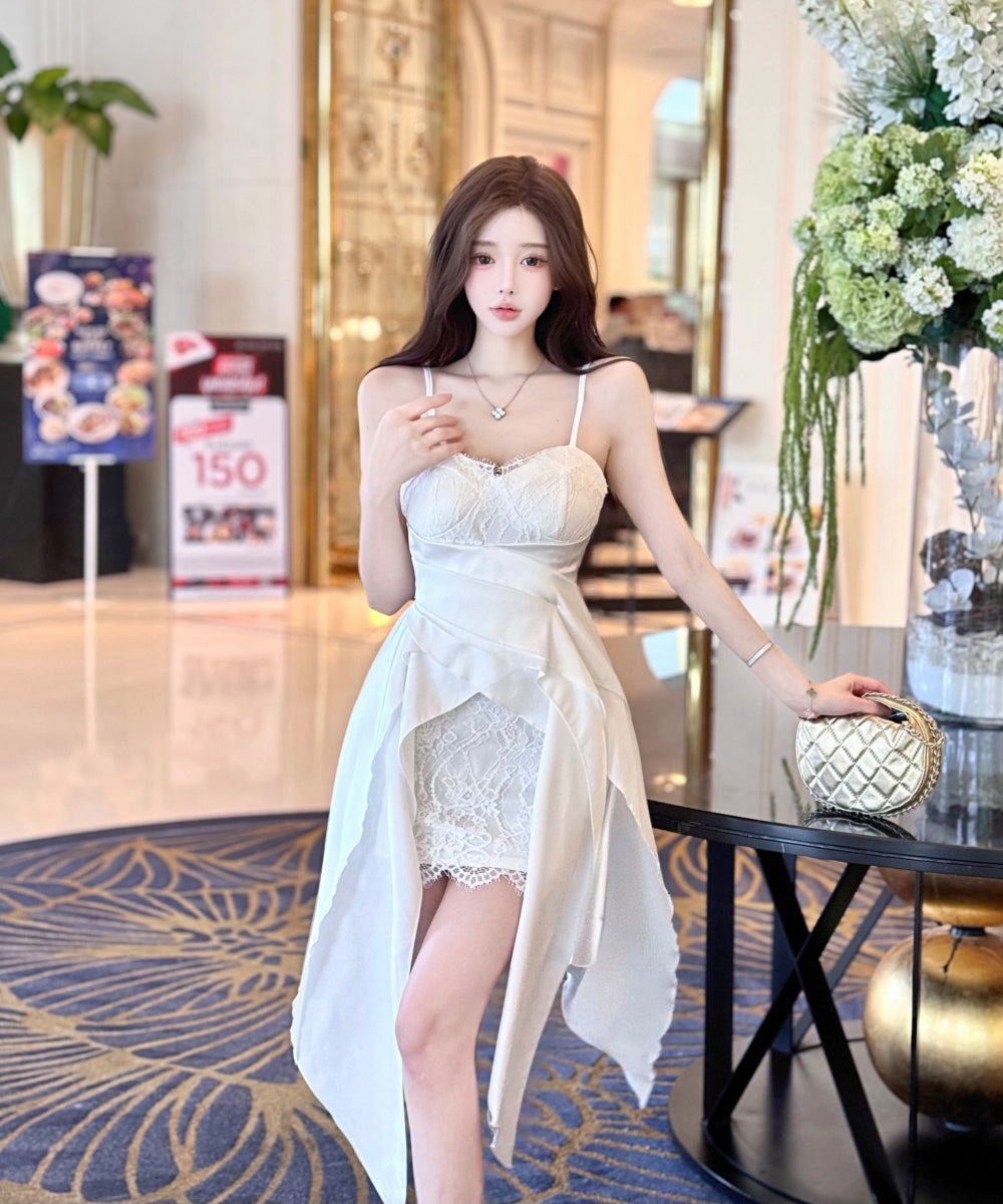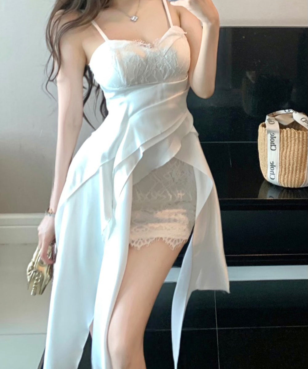 ミニドレス キャバドレス キャミソールワンピースクシー レース不規則デザイン Vネック 高見え KS2-DD5269