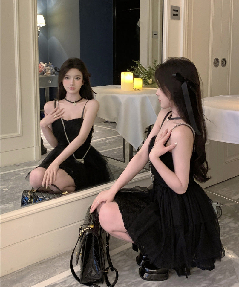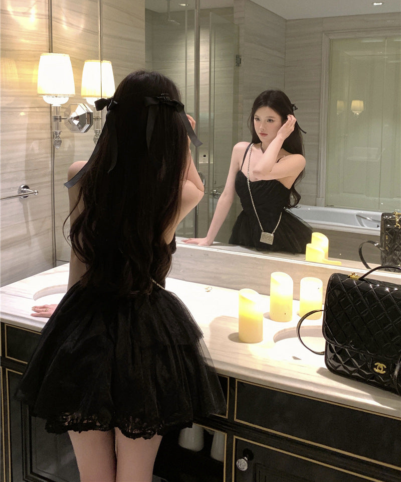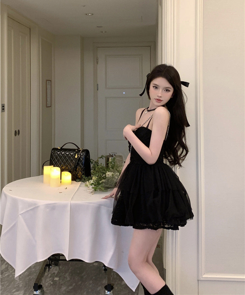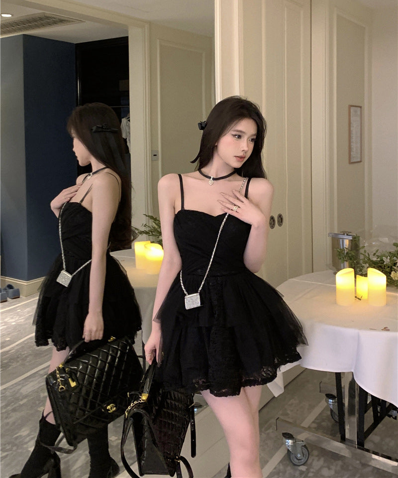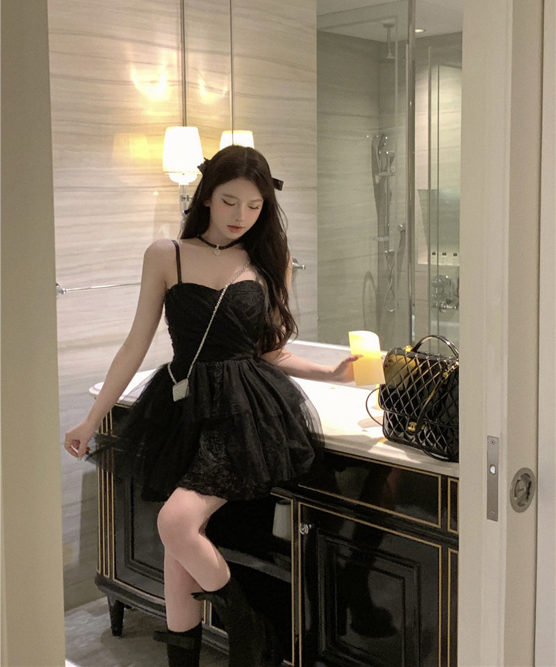 ミニドレス キャバドレス キャミワンピ ピュアセクシー フリルドレス レース刺繍 網紗 ウエスト絞り パーティー JC2-ZED88358DXH34