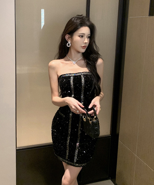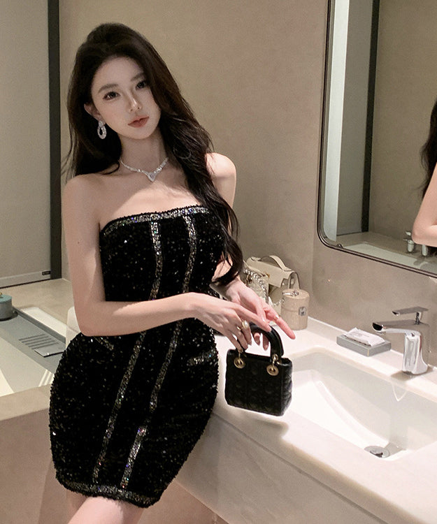 ミニドレス キャバドレス キラキラ ベアトップ セクシー ナイトクラブ 指名 XH2-DD7504