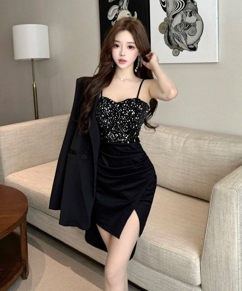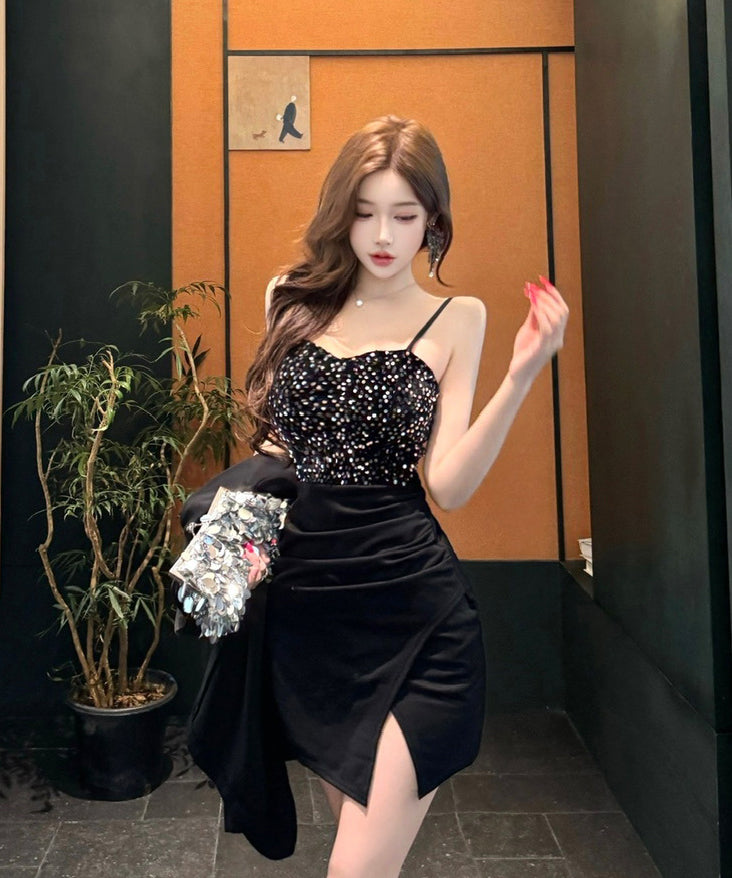 ミニドレス キャバドレス セクシー スパンコール切り替え キャミワンピ タイトシルエット 胸元魅せ クラブ 指名 パーティー 二次会に映える1着 JC2-DD5597