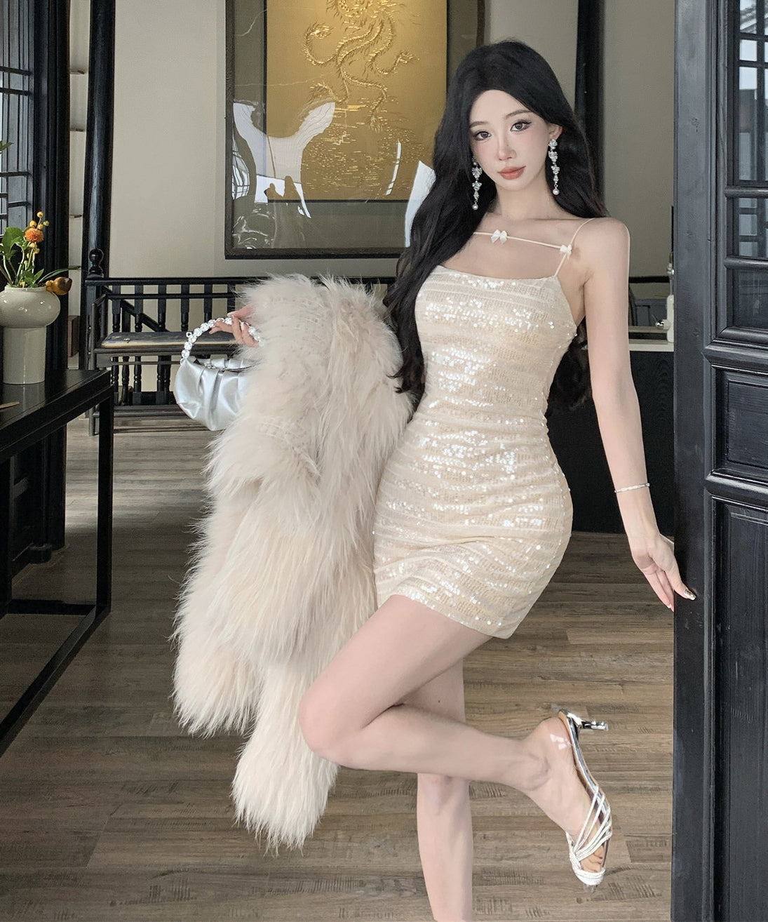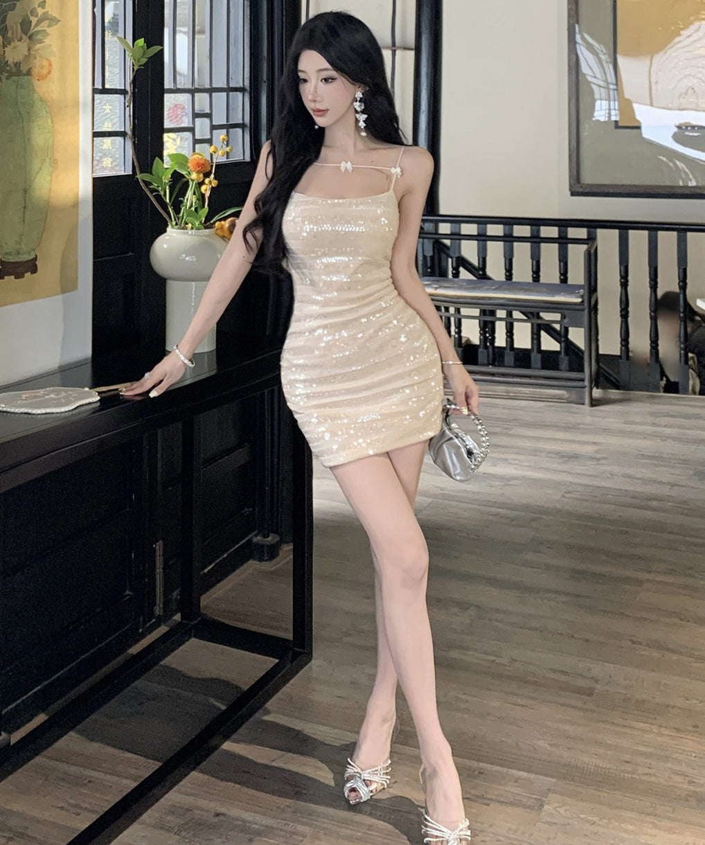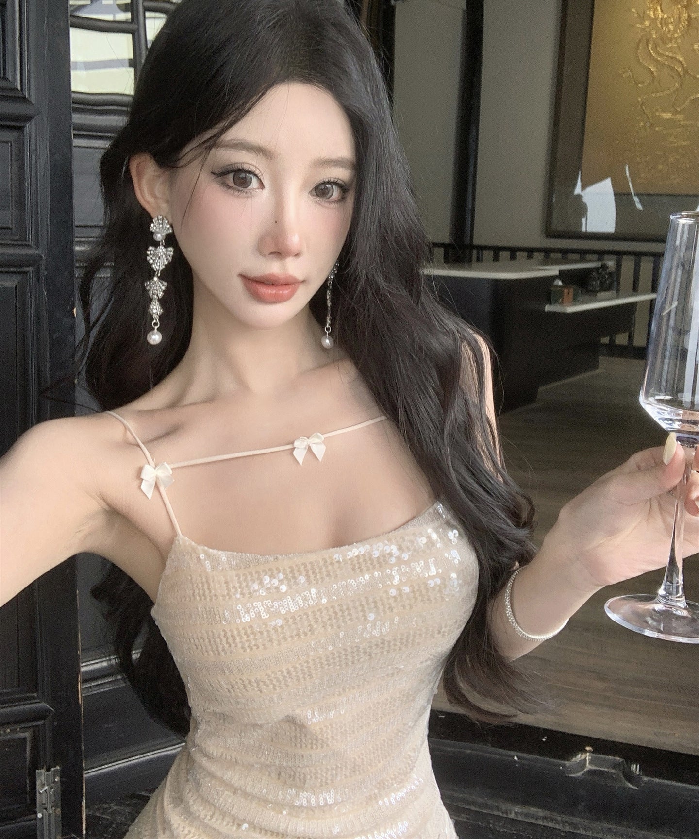ミニドレス キャバドレス セクシー スパンコール キャミワンピ スリーブレス リボン飾り ボディコン ナイトクラブ 指名 JC2-18YX792