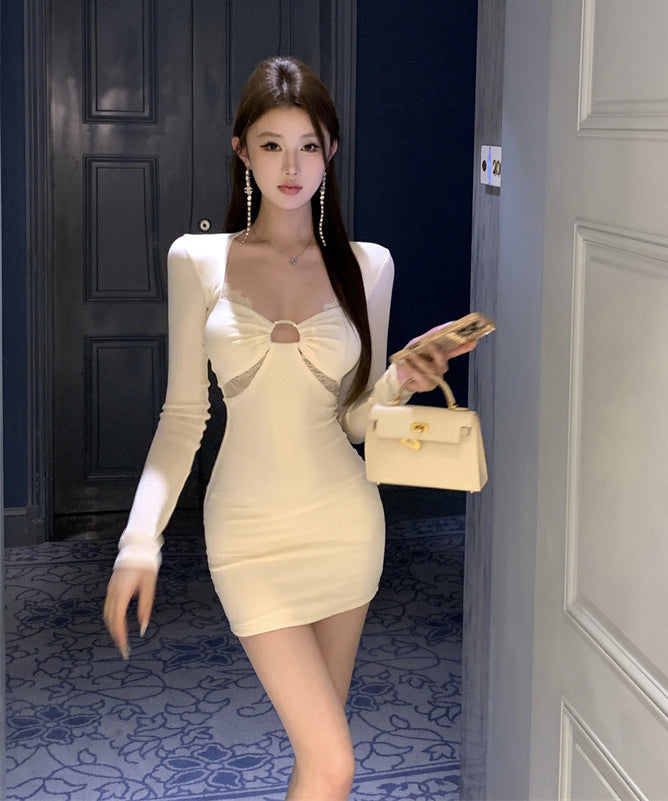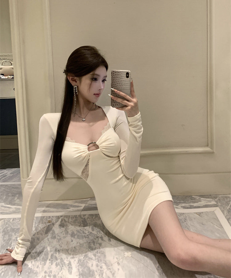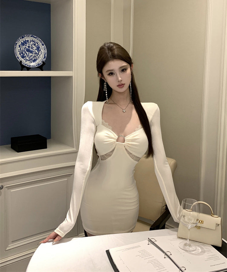 ミニドレス キャバドレス セクシー レース 谷間見せ 袖付き 指名 気質 XH2-ZED882422DXH437