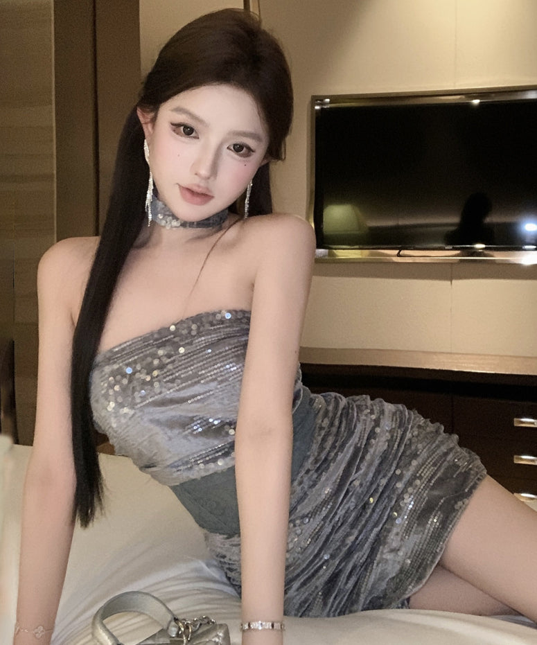 ミニドレス キャバドレス ベアトップ キラキラ セクシー party ナイトクラブ XH2-XKD-D308-6861-Jul3