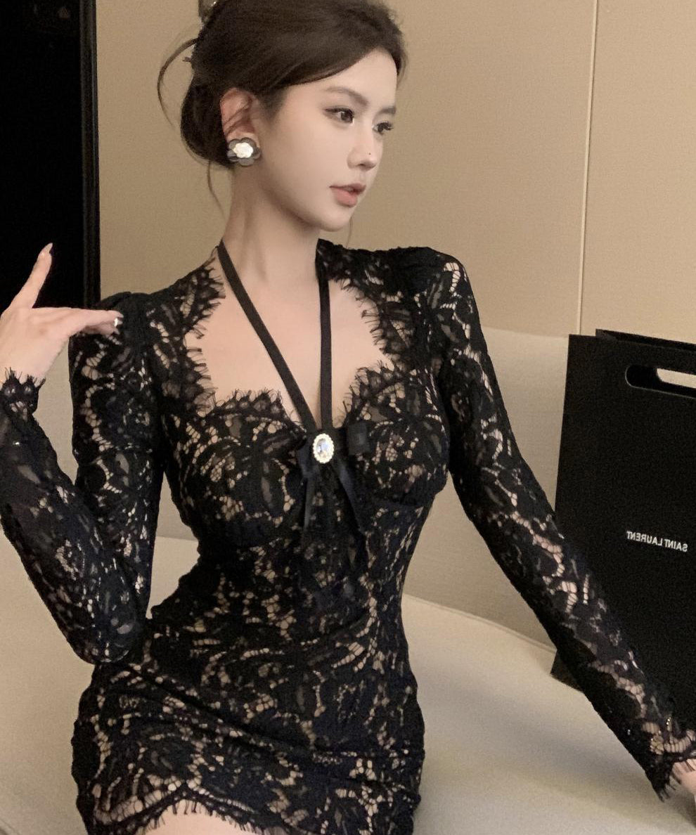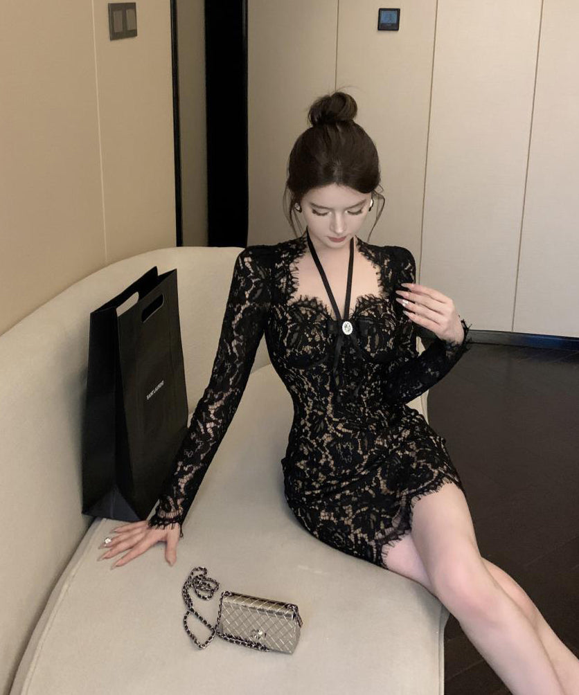 ミニドレス キャバドレス レース 袖付き セクシー エレガント 大人可愛い タイトドレス XH2-ZED881197DXH411