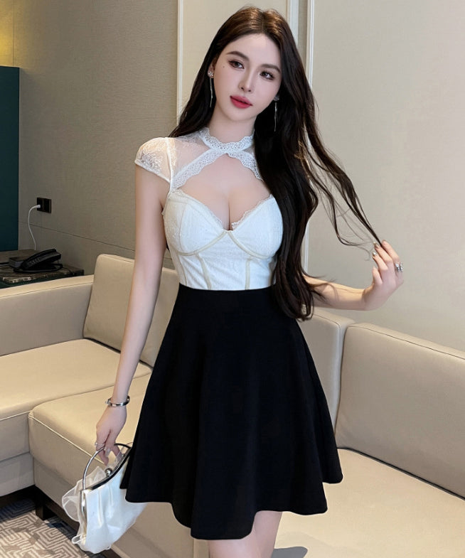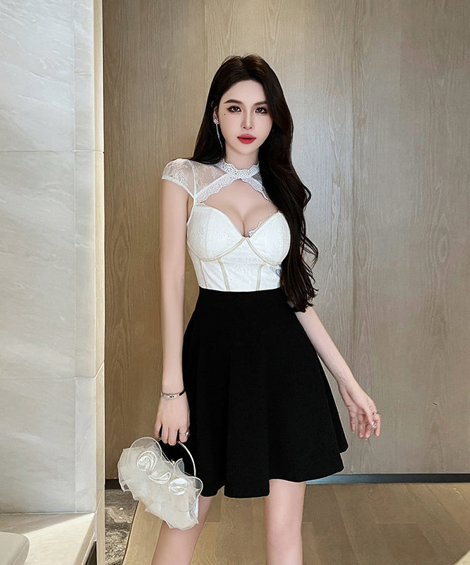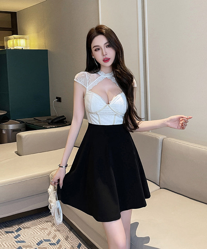 ミニドレス キャバドレス レース Aライン セクシー 谷間露出 おしゃれ YH2-YM8786