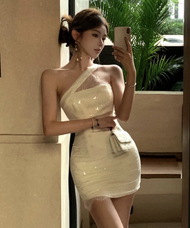 ミニドレス キャバドレス ワンショルダー レース キラキラ ナイトクラブ セクシー 指名 パーティー XH2-ZED882584DXH437A
