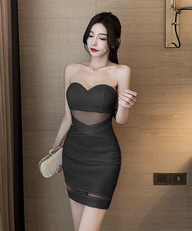 ミニドレス キャバドレス 新作 透け感 セクシー ノーショルダー MY2-YM8751