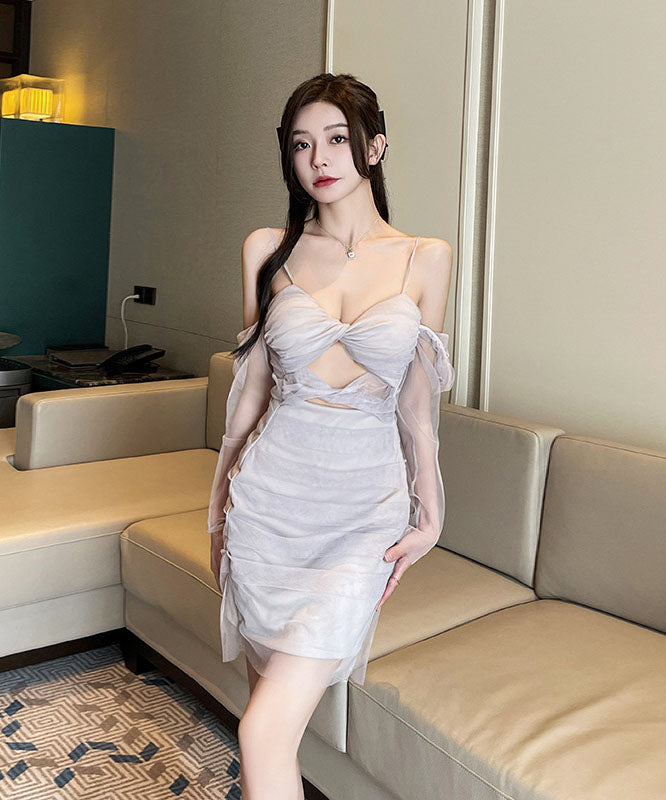 ミニドレス キャバドレス 新作 透け感 チュール セクシー 着痩せ YH2-YM8769