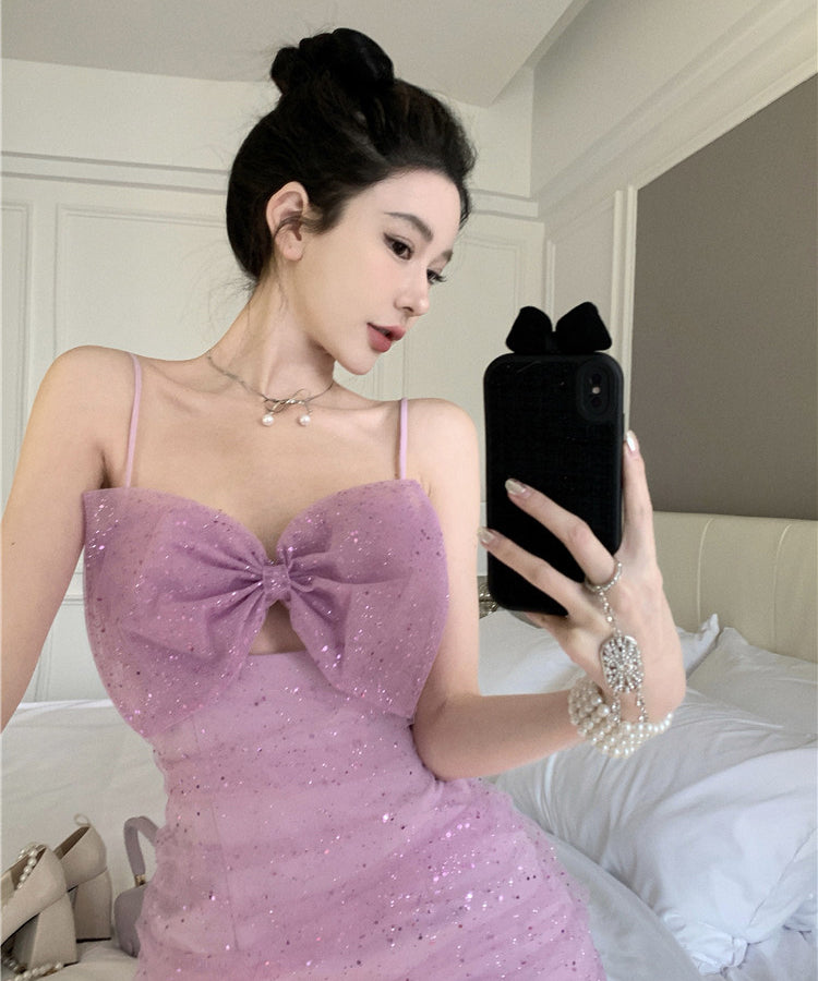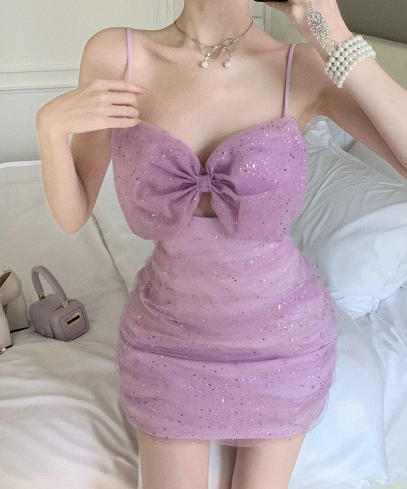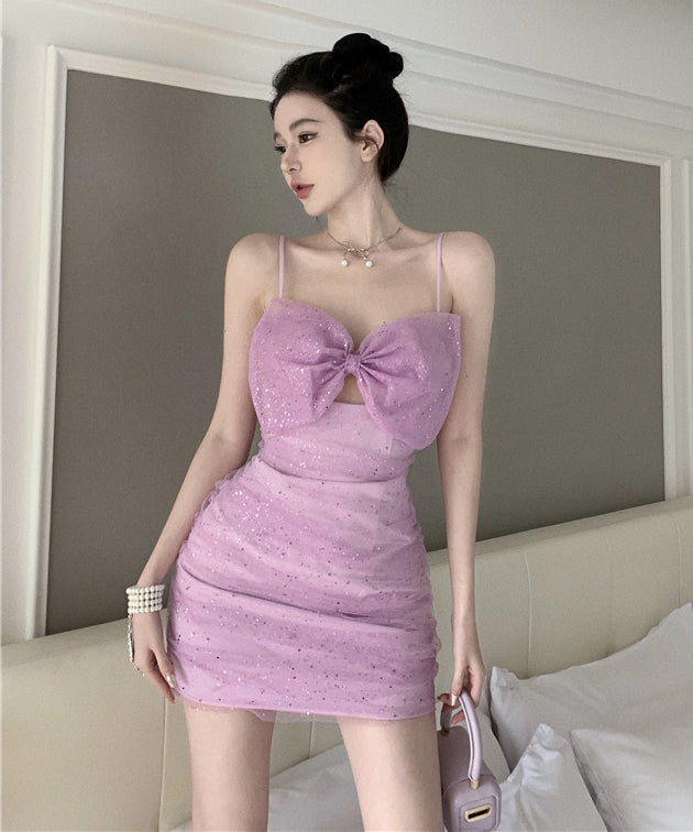 ミニドレス キャバドレス 肌見せ リボン かわいい ピカピカ MY2-EMK1971