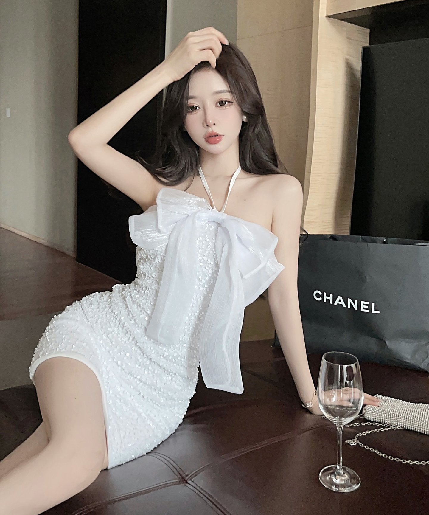 ミニドレス キャバドレス 蝶結び キラキラ ホルターネック かわいい エレガント YH2-DD6706
