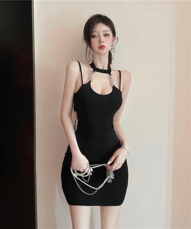 ミニドレス セクシー キャバドレス ウエストカット チェーン 肌見せ XH2-DD4127