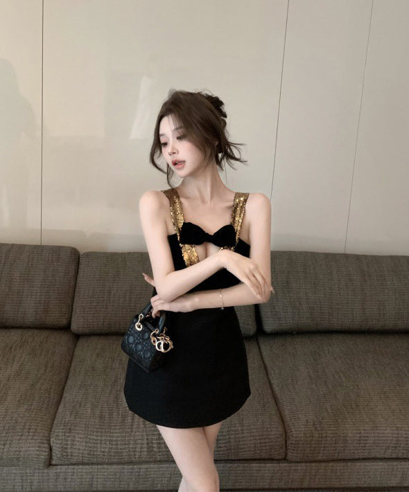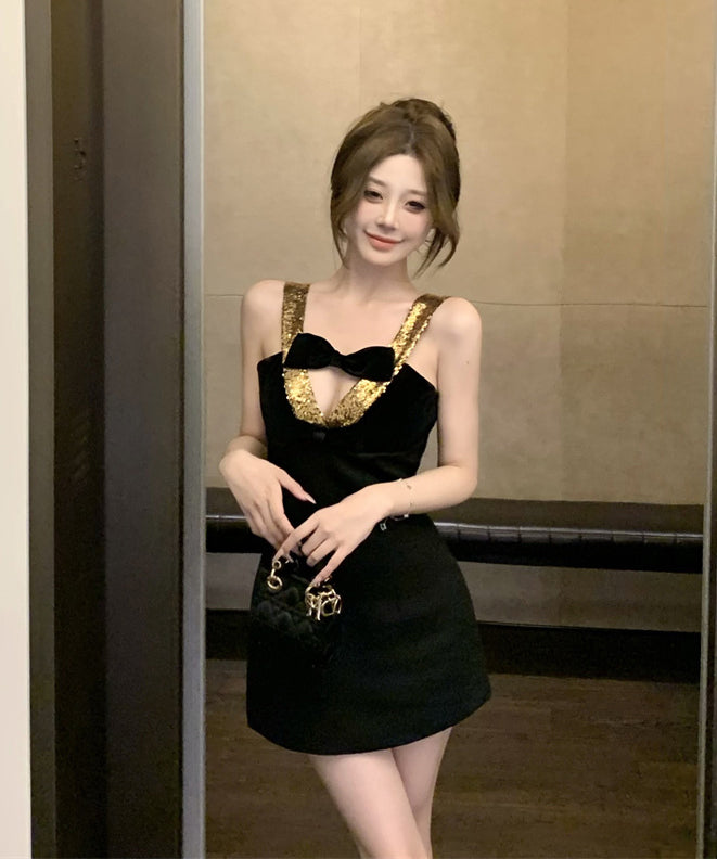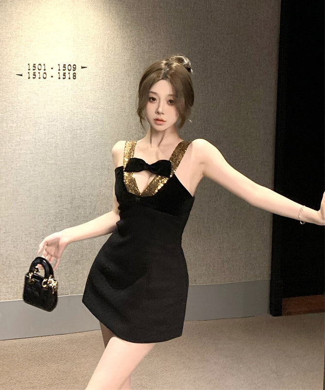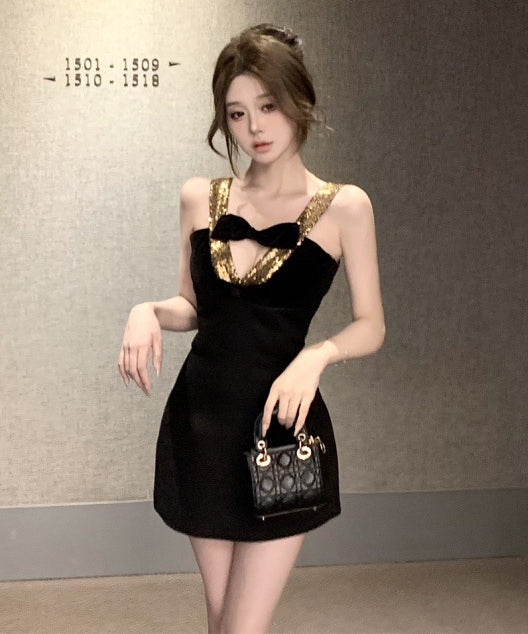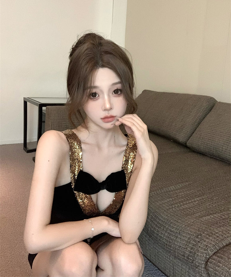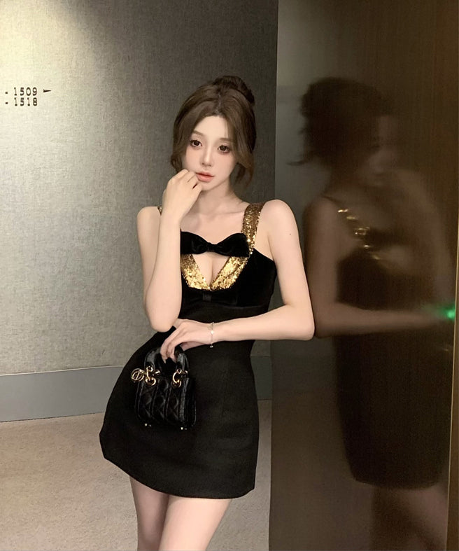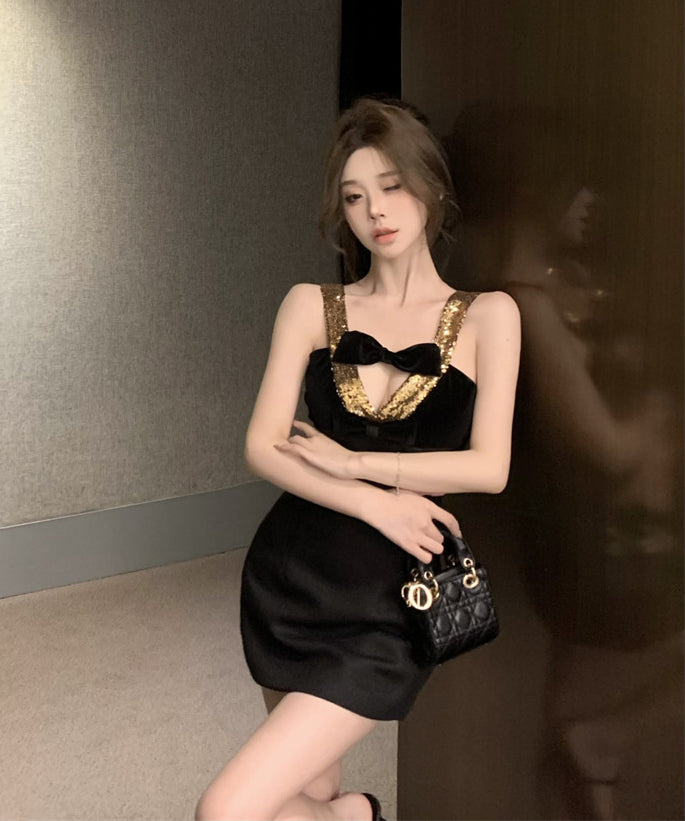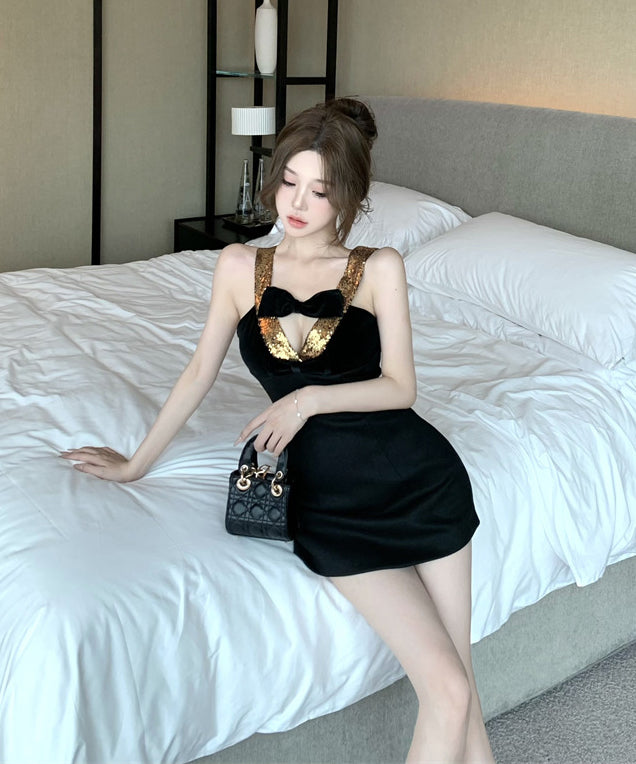 ミニドレス セクシー 谷間見せ リボン キラキラ party ナイトクラブ XH2-XKD-GR-34-2188-Apr13