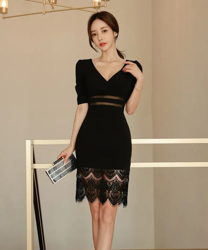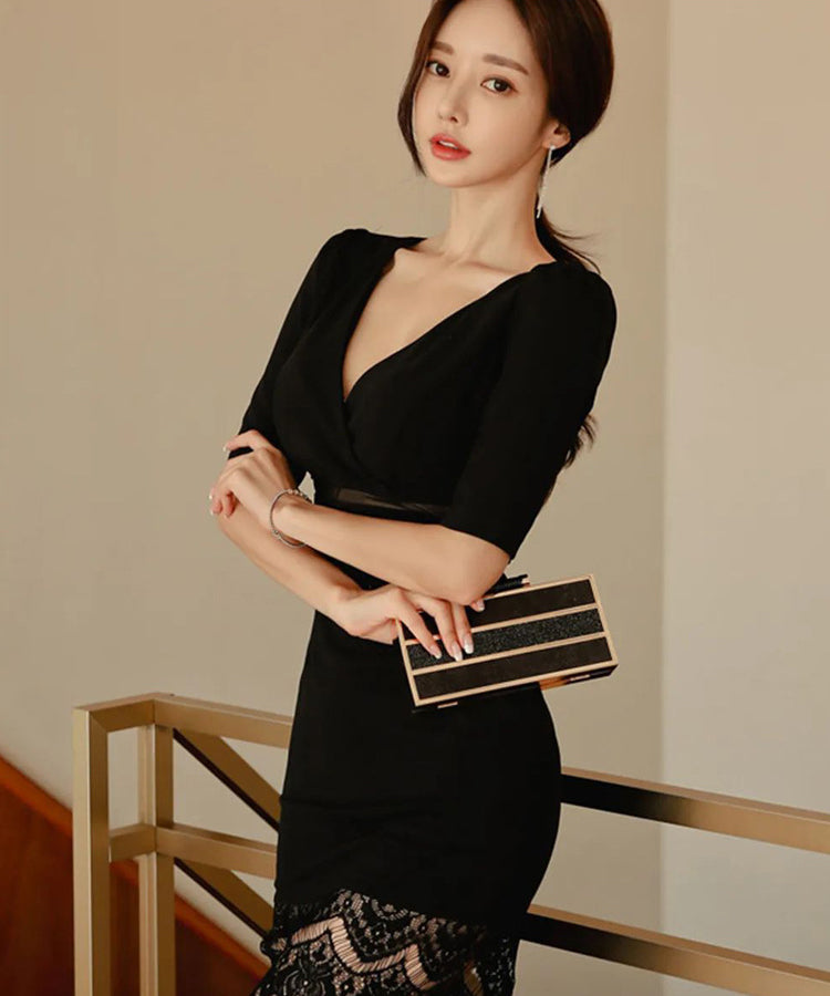 ミニドレス セクシー Vネック 谷間魅せ 気質 小顔効果 お洒落 着痩せ YH2-ZED882727BH506